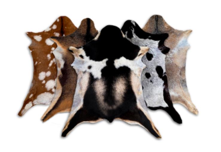 MINI COWHIDE NATURAL COLORS ASSORTED (NO BORDER, PLAIN, NO DESIGN INSIDE) - AVERAGE SIZE 31" x...