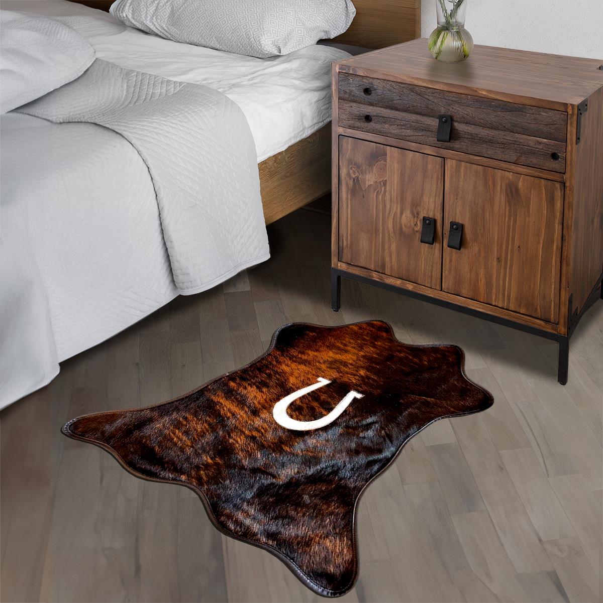 MINI COWHIDE WITH BORDER - HORSESHOE 31" x 29"