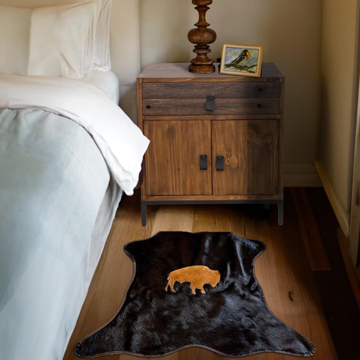 BAROQUE BROWN ON BLACK COWHIDE RUG - MINI - 31" x 29"