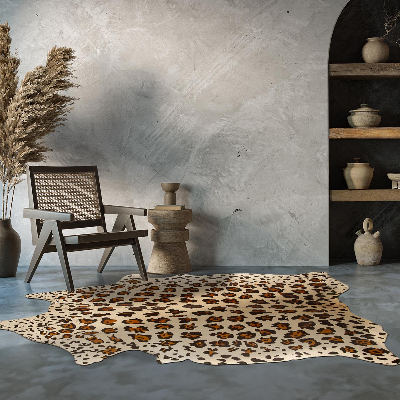 LEOPARD ON BEIGE COWHIDE RUG - SIZE 3-5 SQM LARGE