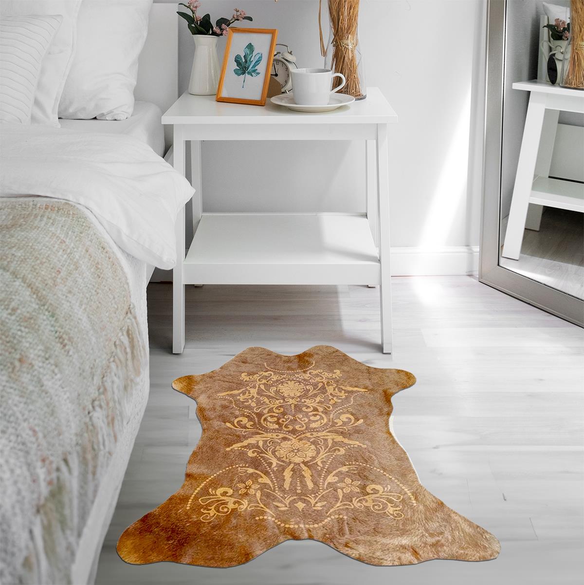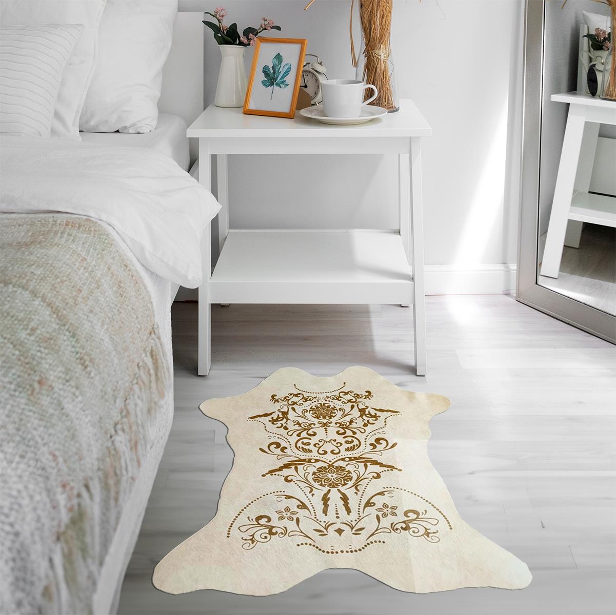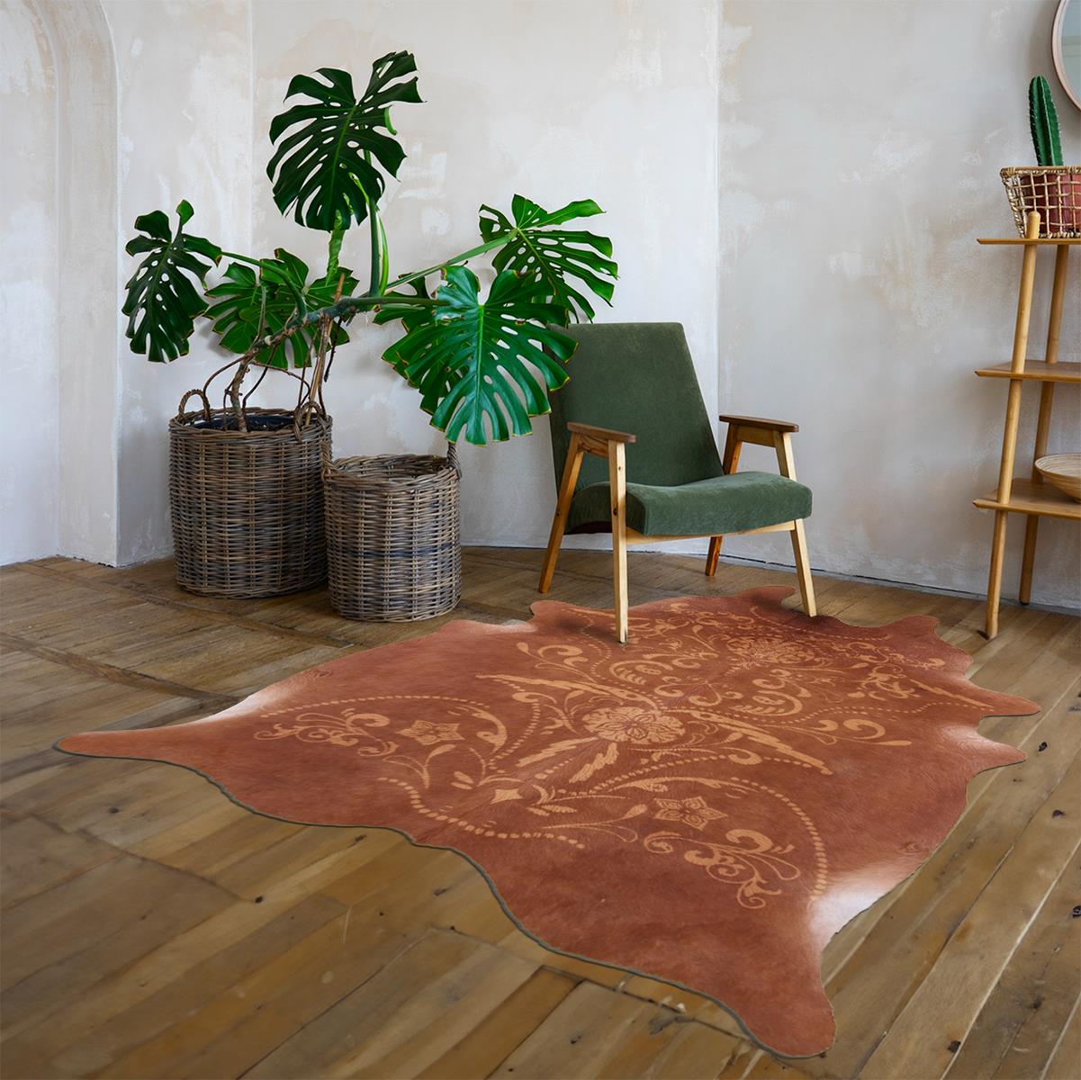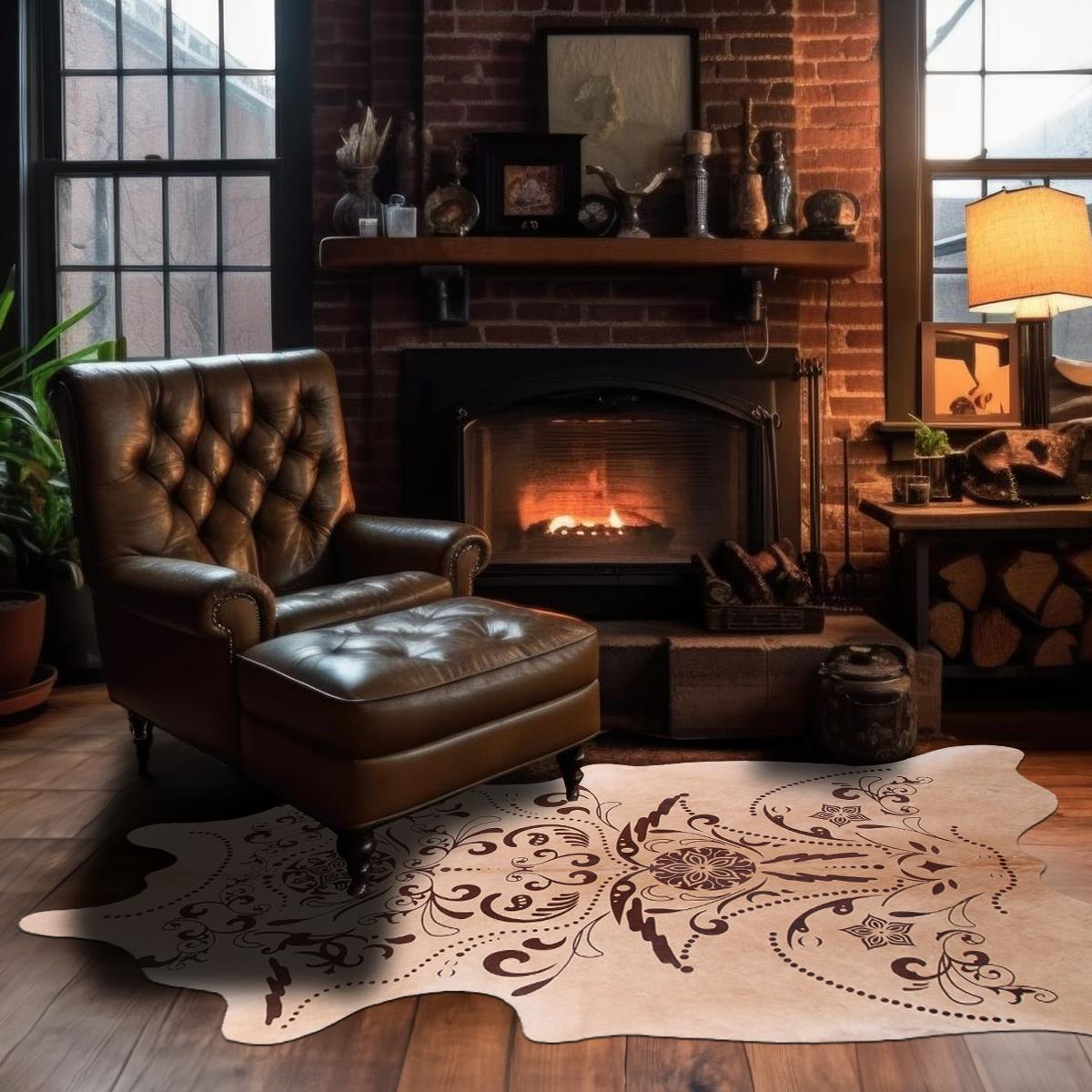 BAROQUE BEIGE ON BROWN COWHIDE RUG - 3-5 SQM LARGE