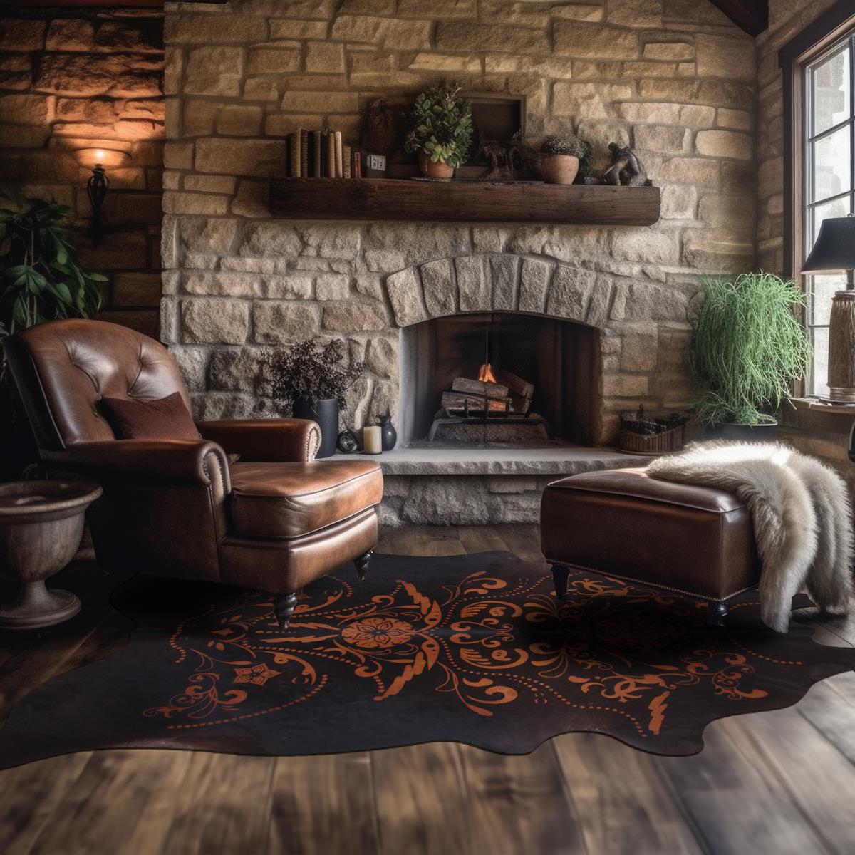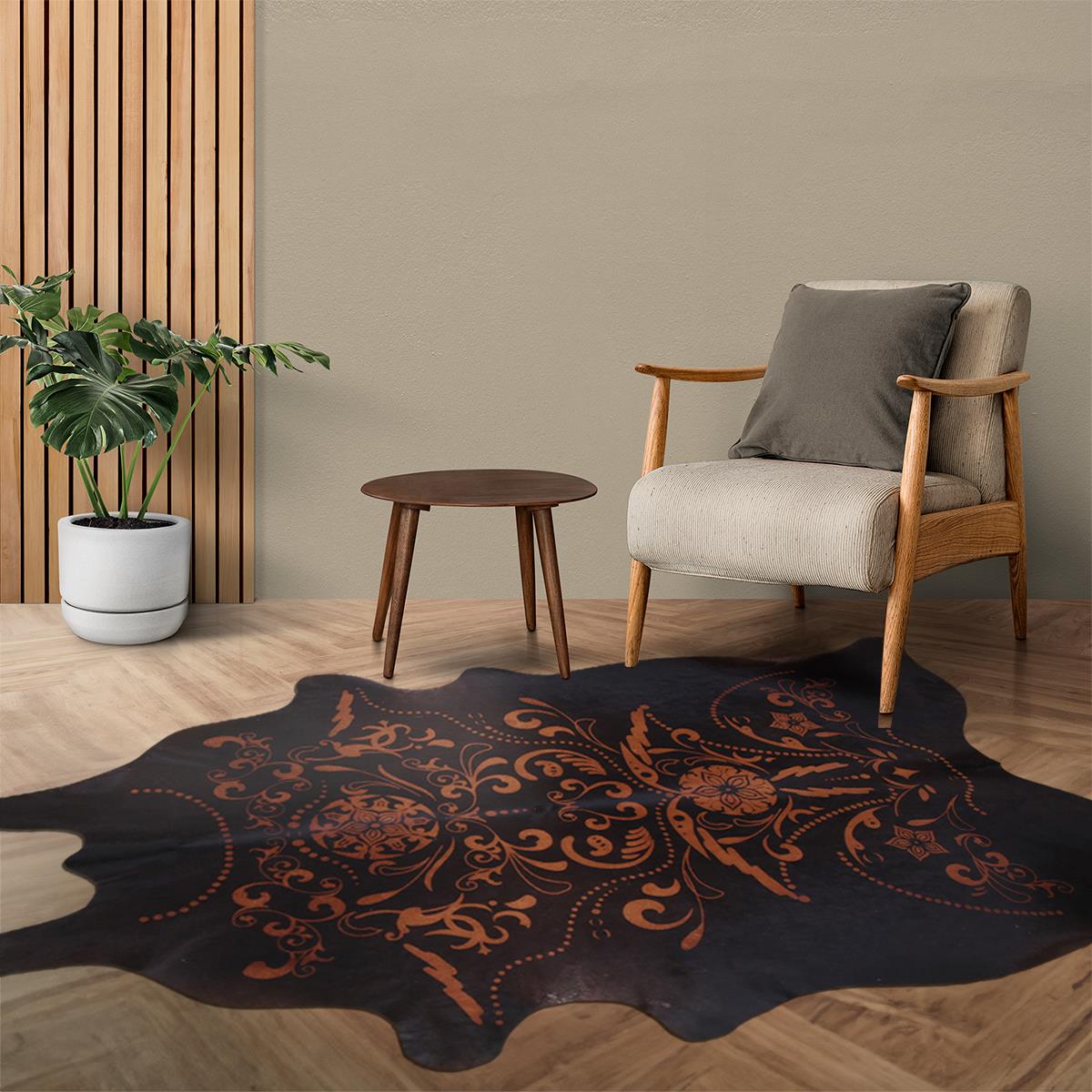 BAROQUE BROWN ON BLACK COWHIDE RUG - 2-3 SQM MEDIUM