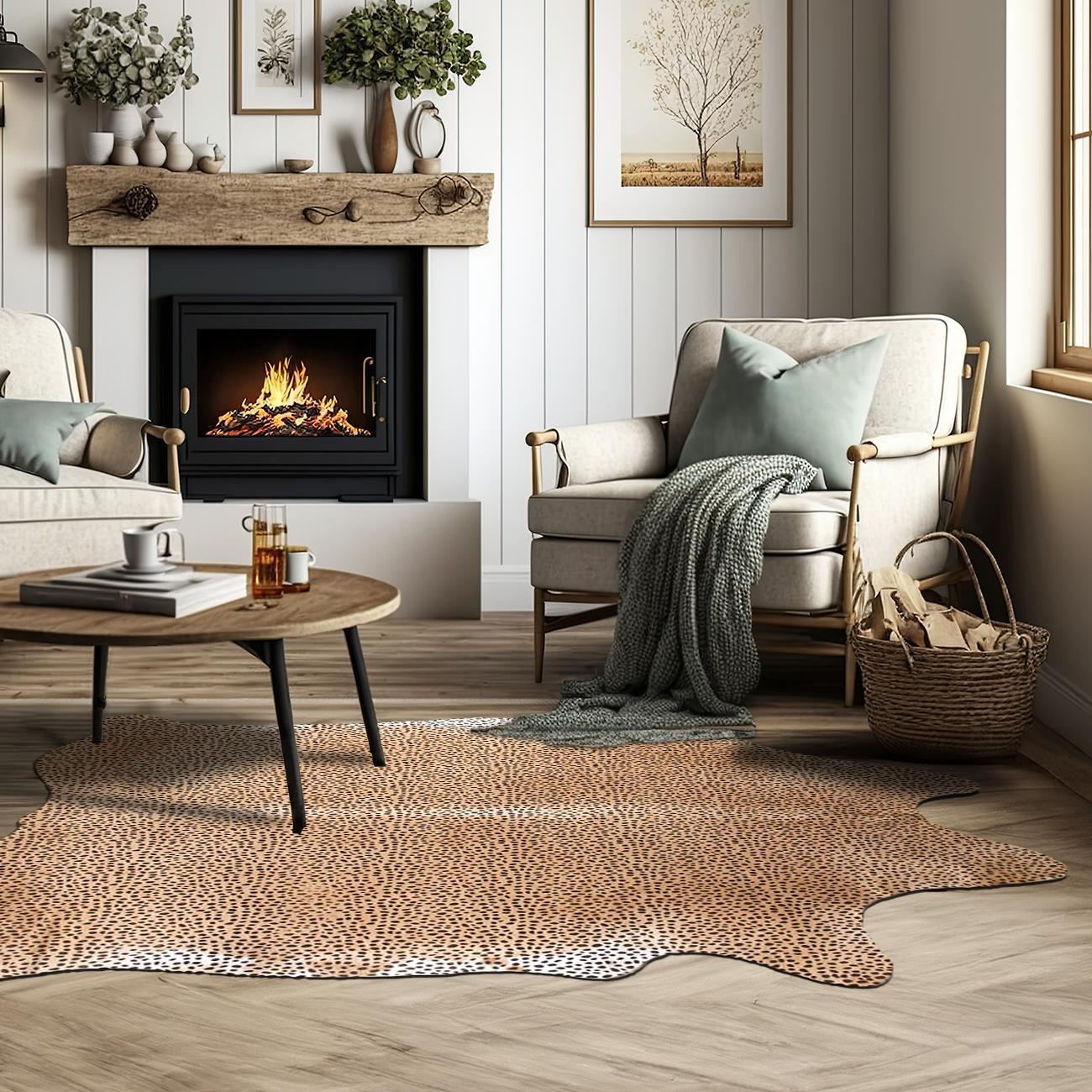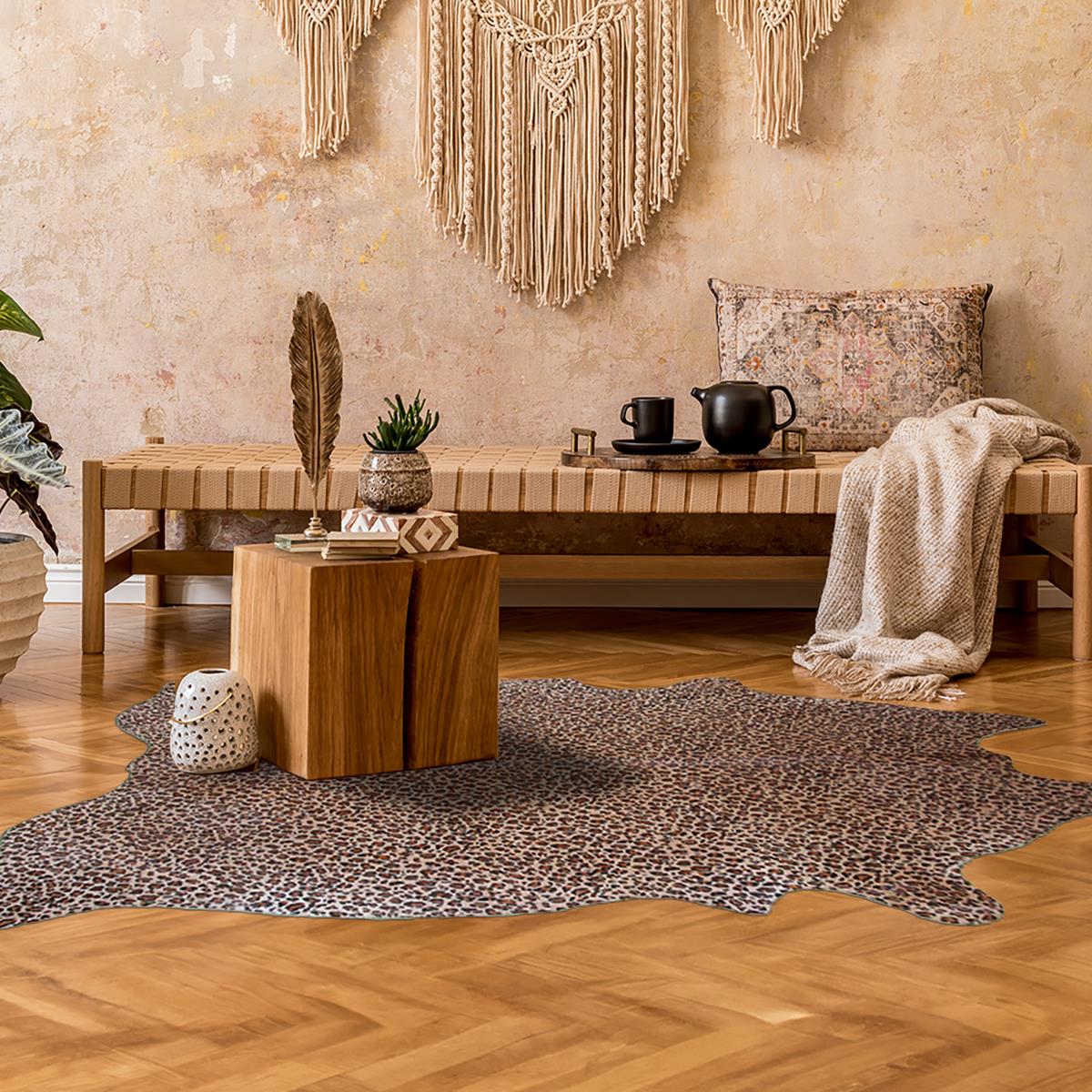 CHEETAH ON BEIGE COWHIDE RUG - SIZE 3-5 SQM LARGE