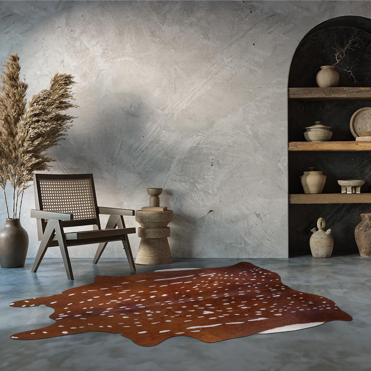 PRINTED AXIS ON WHITE COWHIDE - 3-5 SQM LARGE