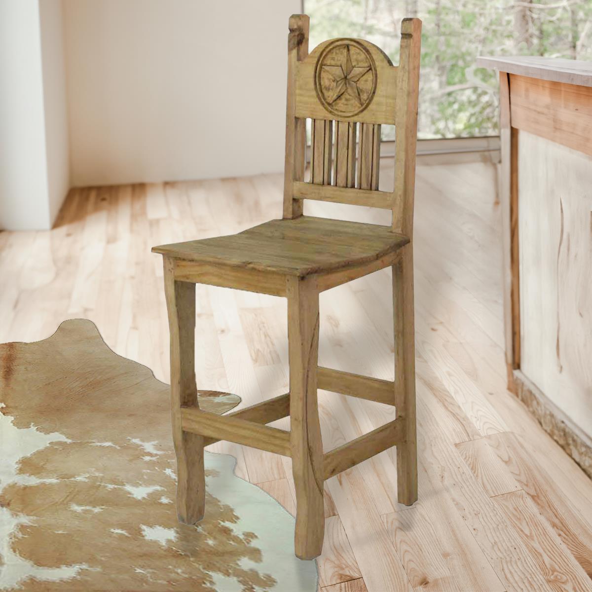 24" Barstool W/Wood Seat and Stone Star