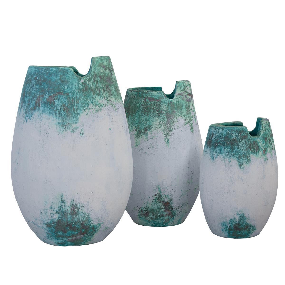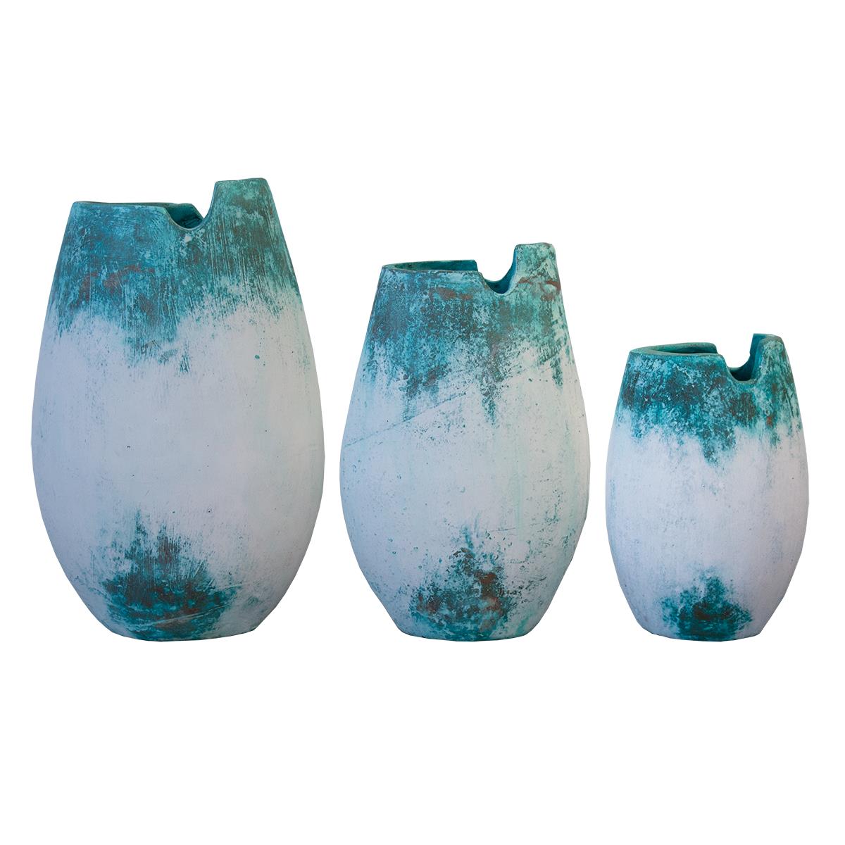 SET OF 3 OVAL POTS - WHITE/TURQUOISE (8x12, 10x17, 11x19.5)
