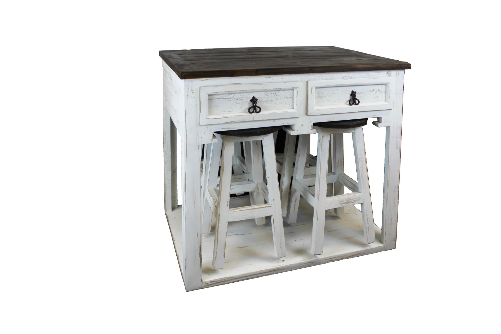 White Kitchen Island W/4 Stools (MARKED AT COST DISCONTINUED)