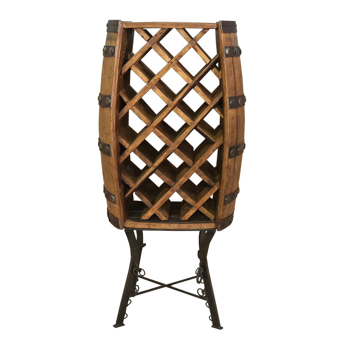 "Wine Cave Barrel Bar" - Half barrel wine rack on hand forged steel base