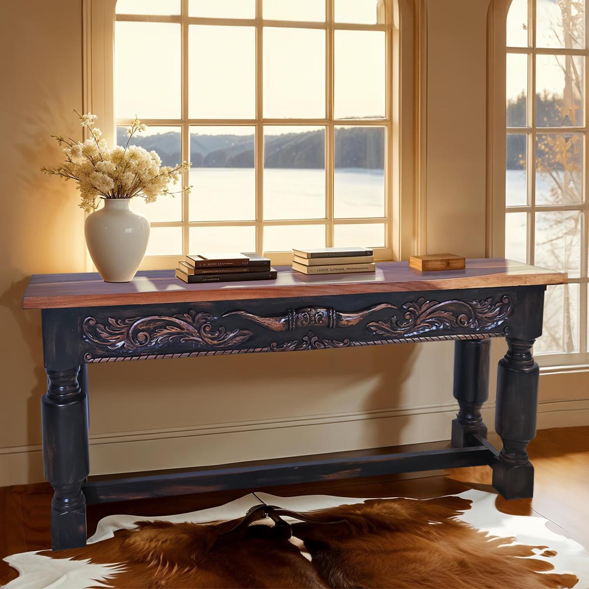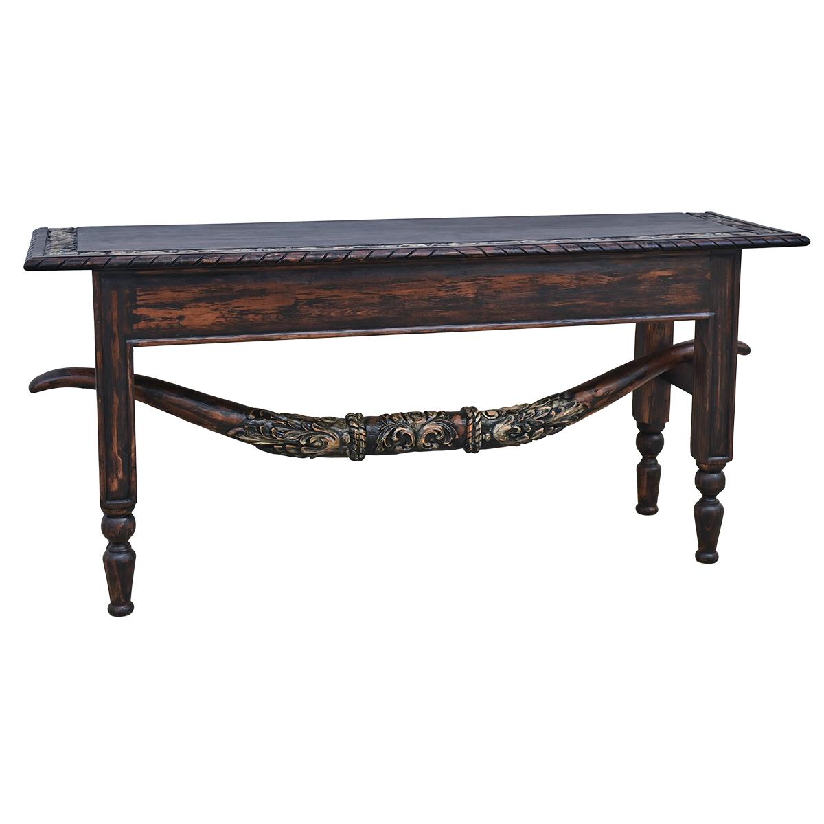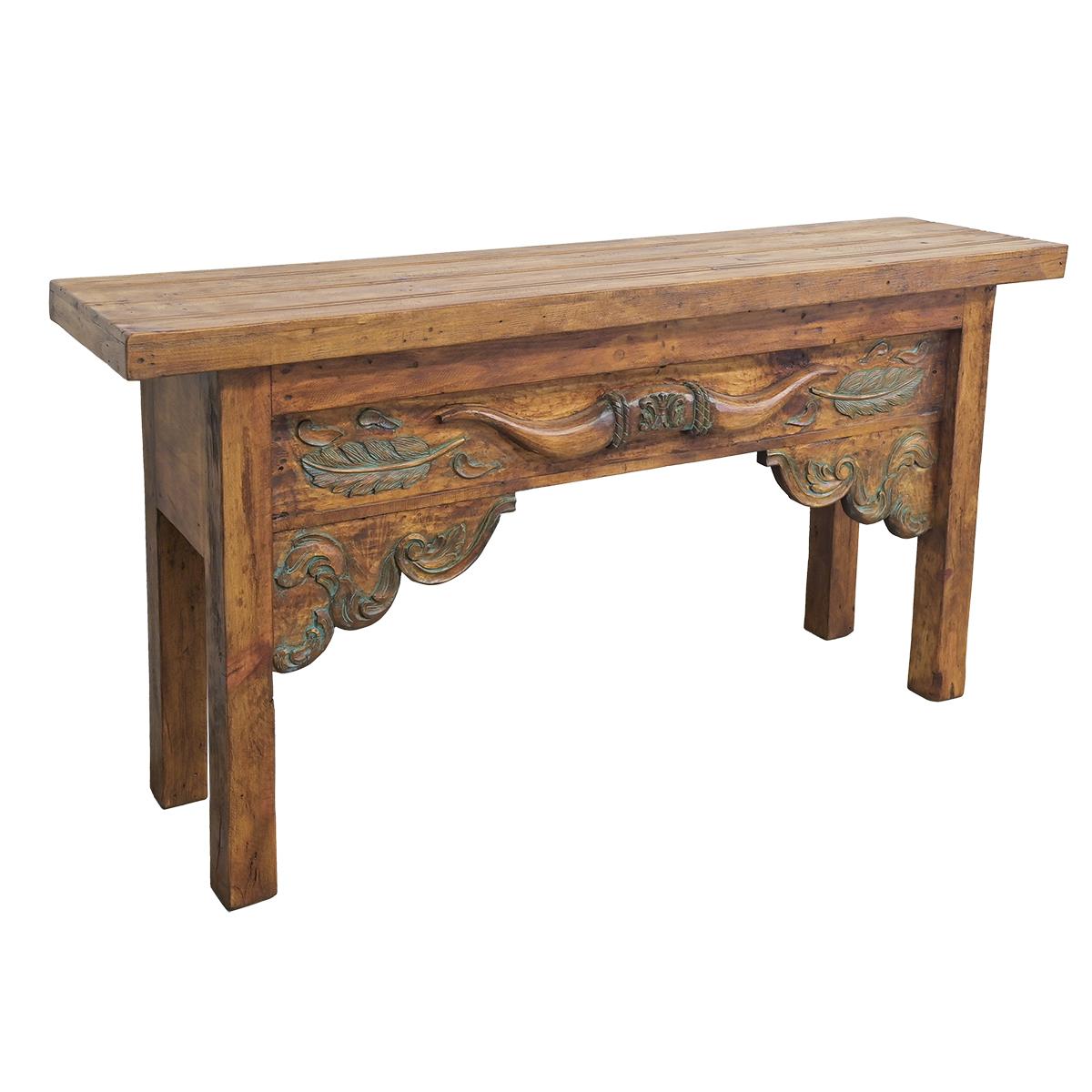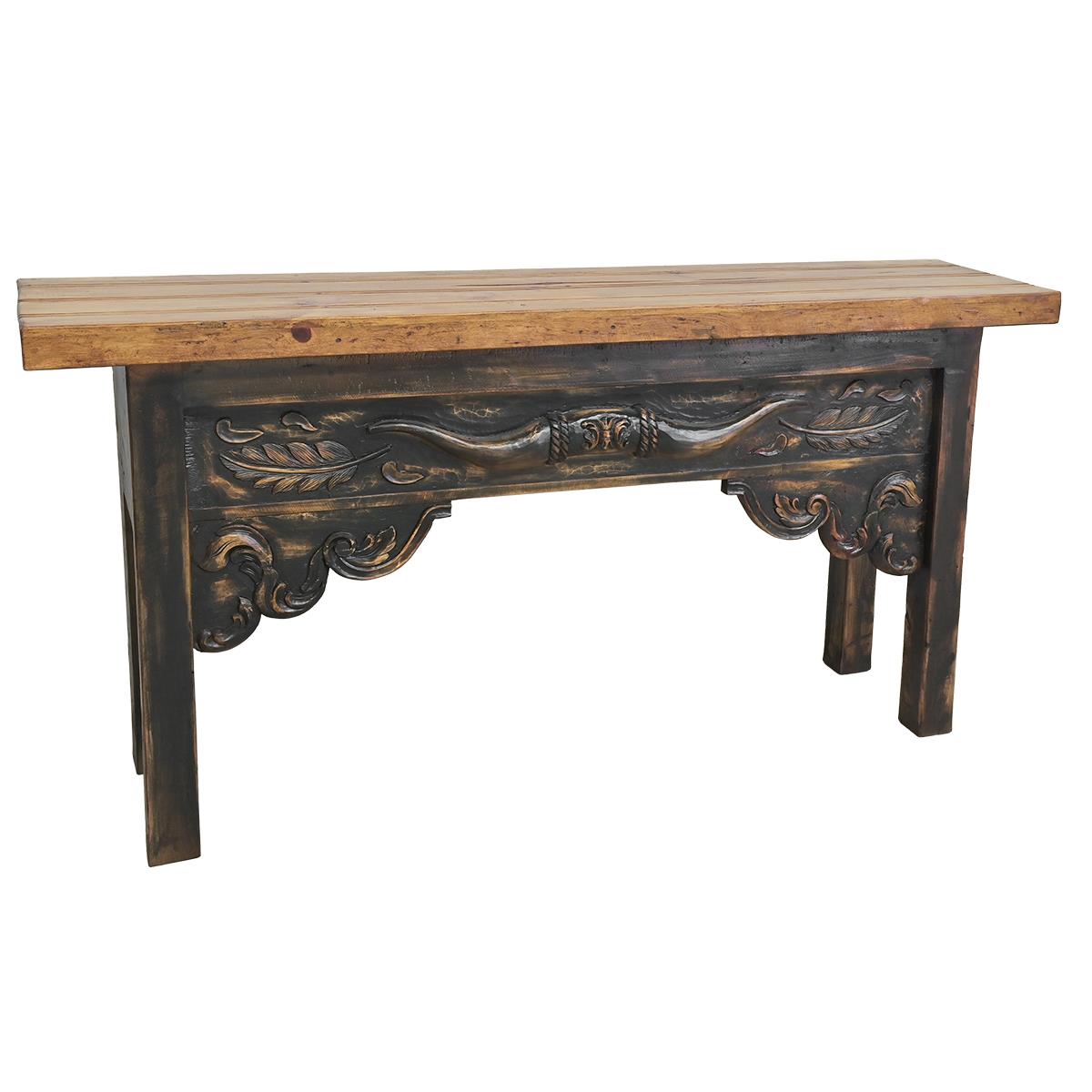 LONGHORN CARVED CONSOLE WITH TURQ WASH