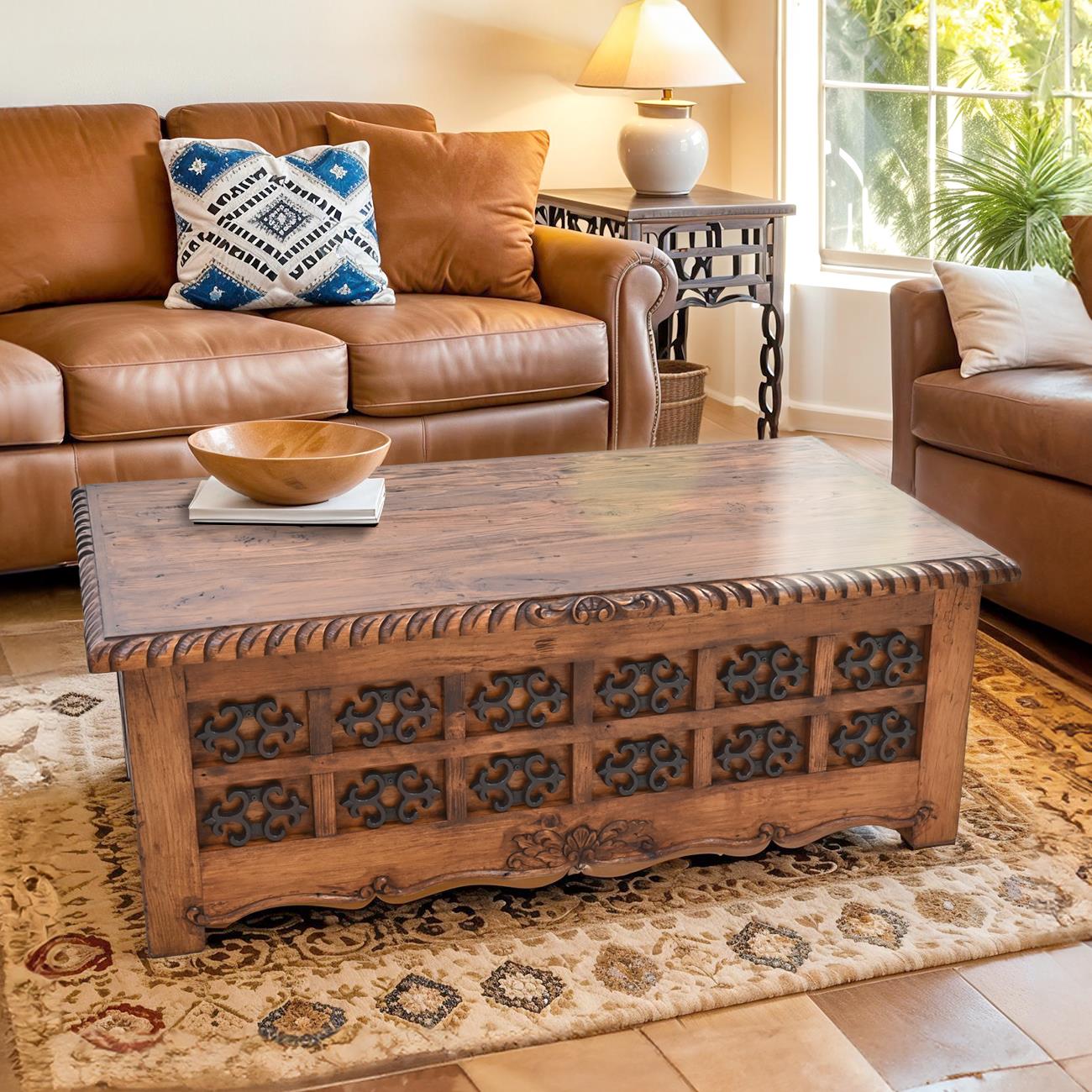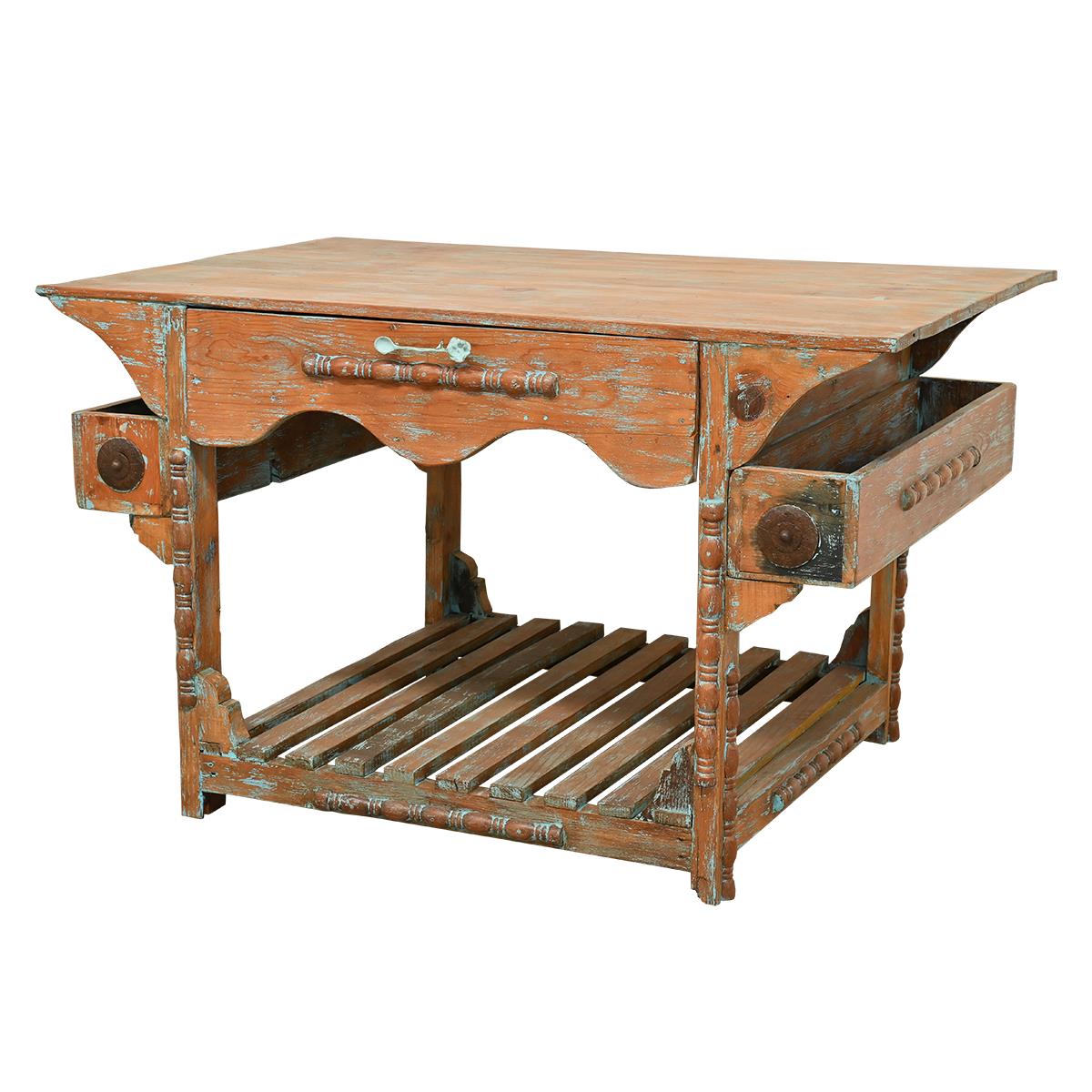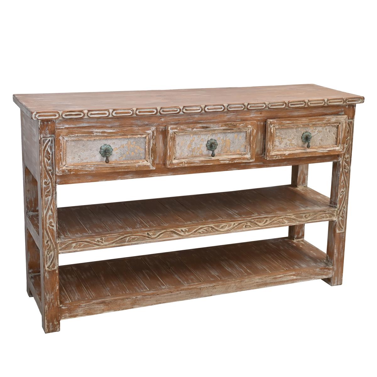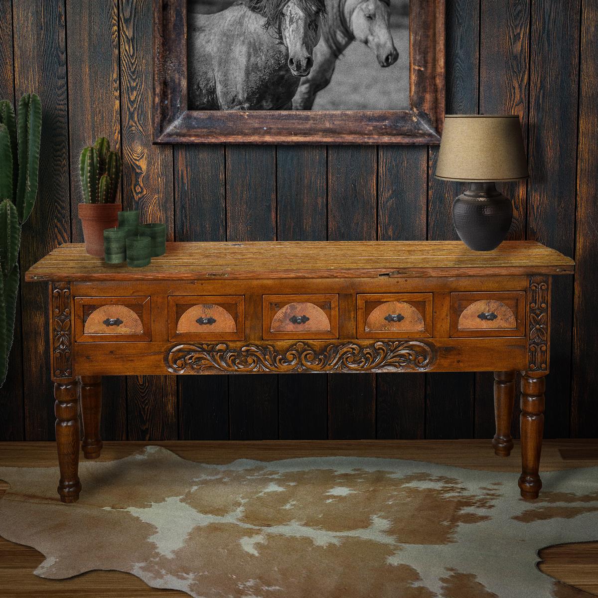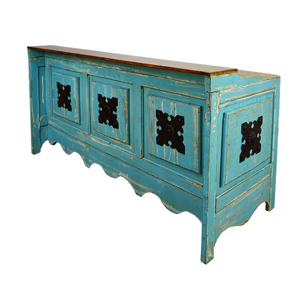 LONGHORN CARVED CONSOLE WITH TURQ WASH