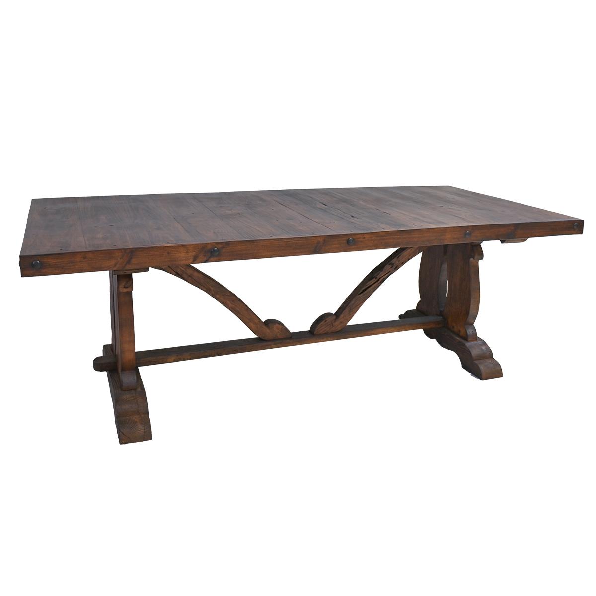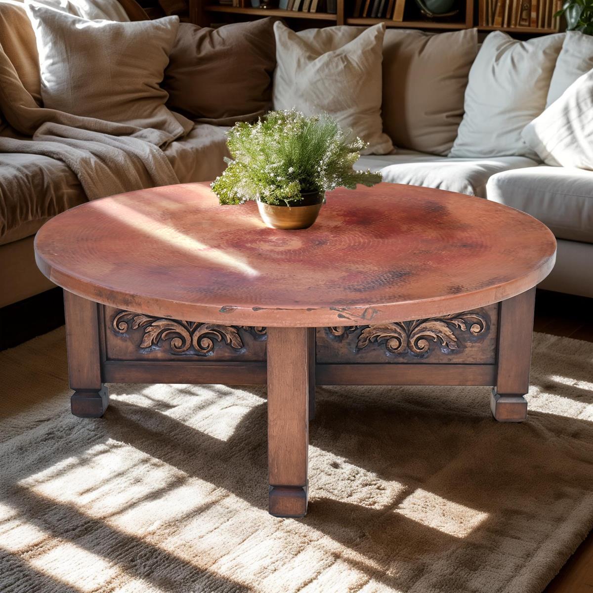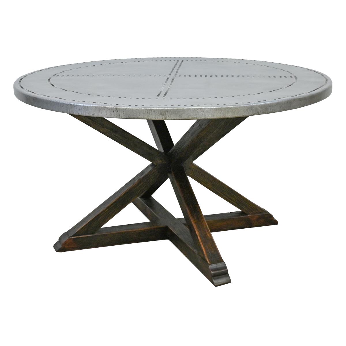 CARVED PEDESTAL AND COPPER TOP DINING TABLE