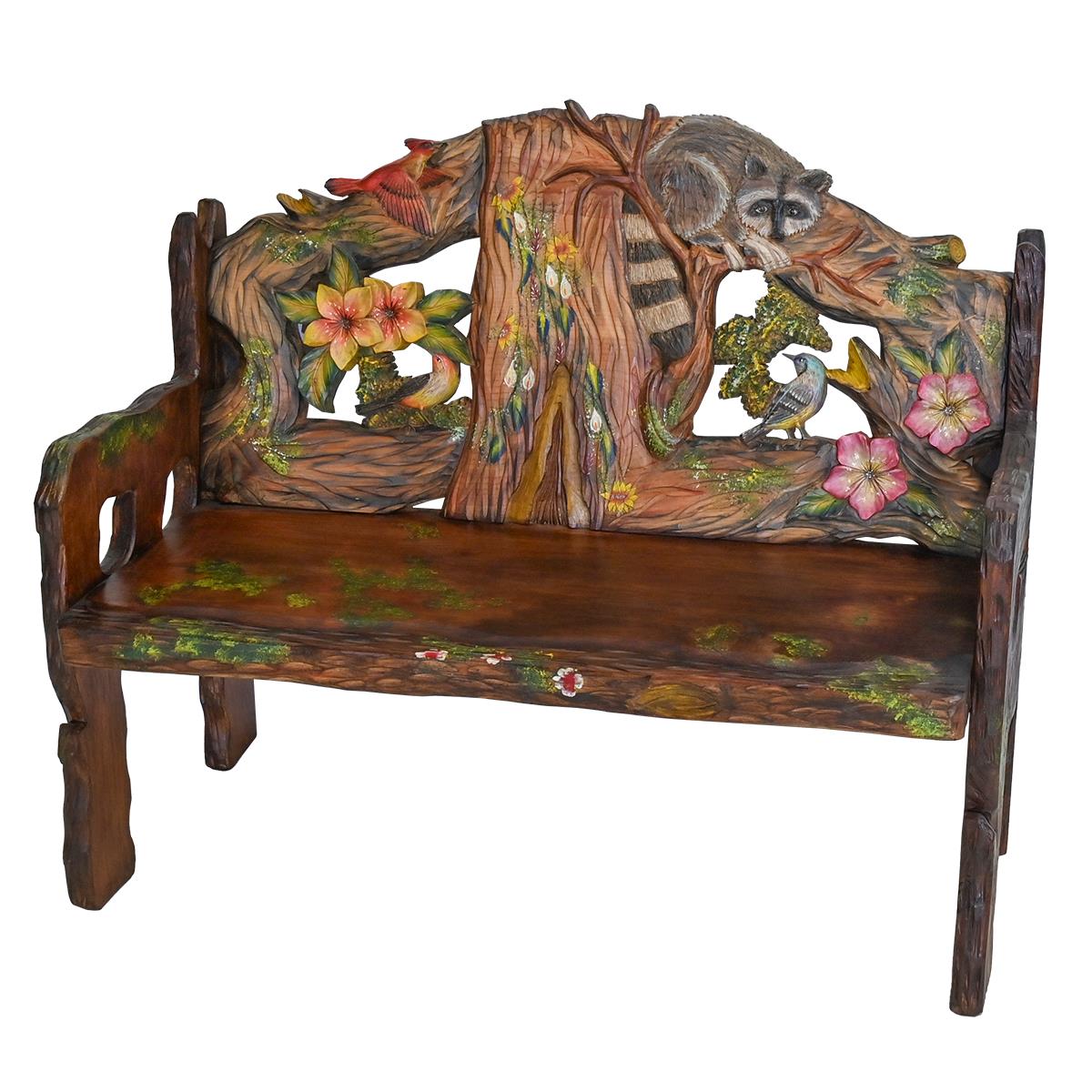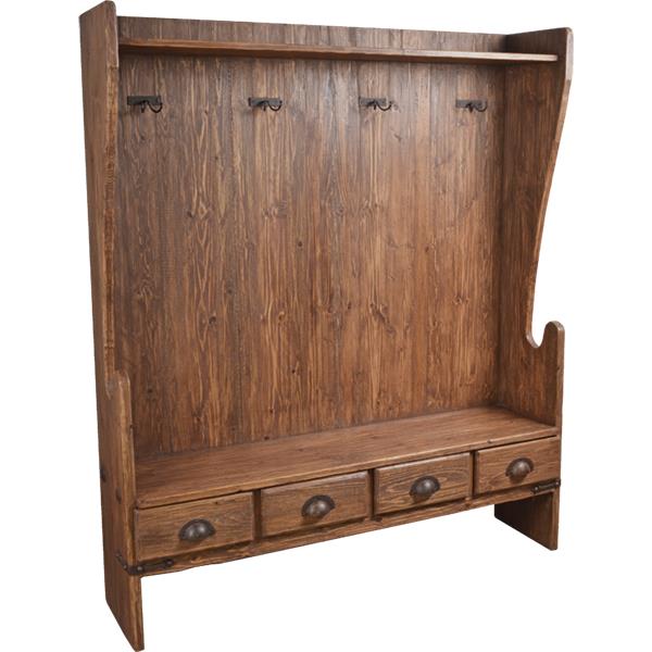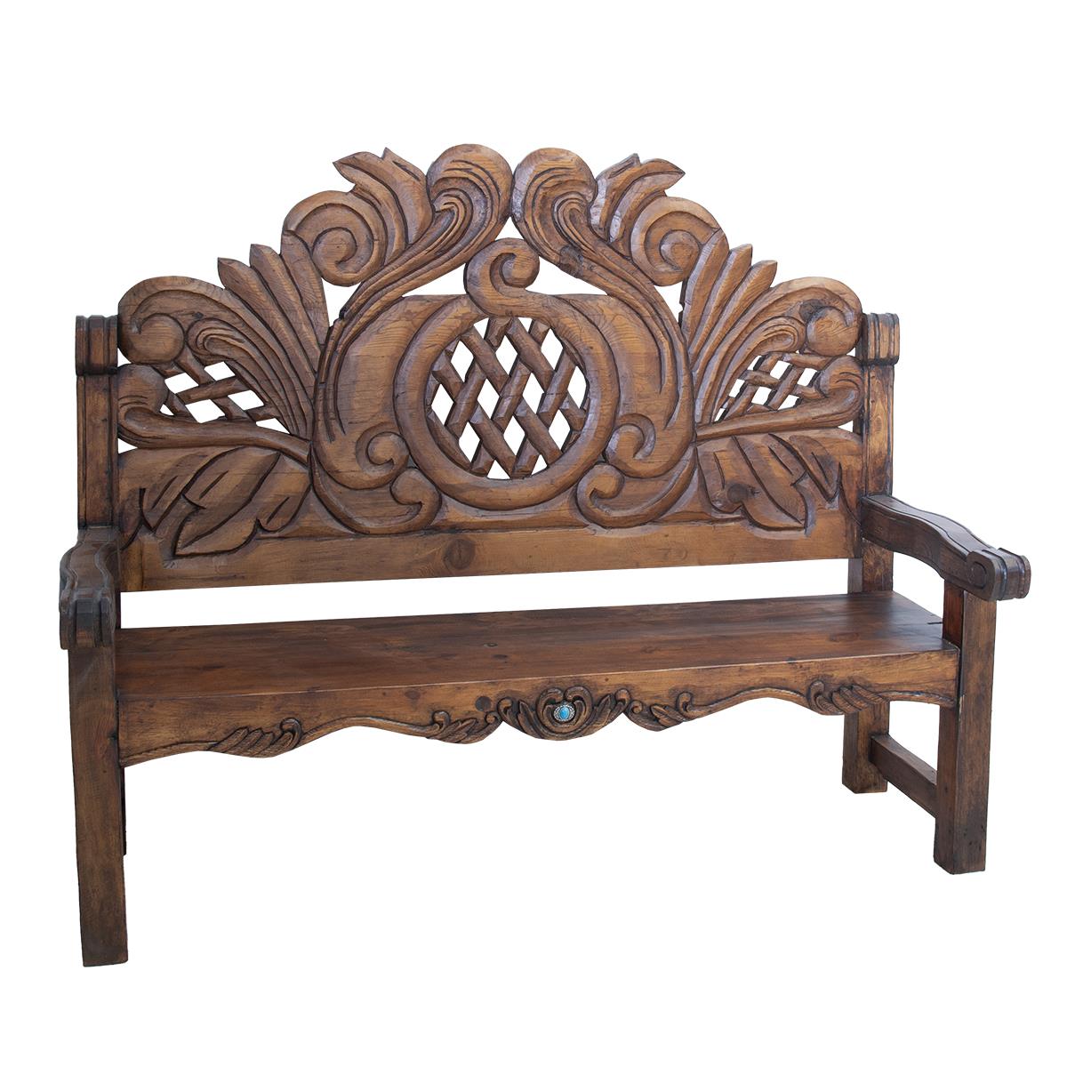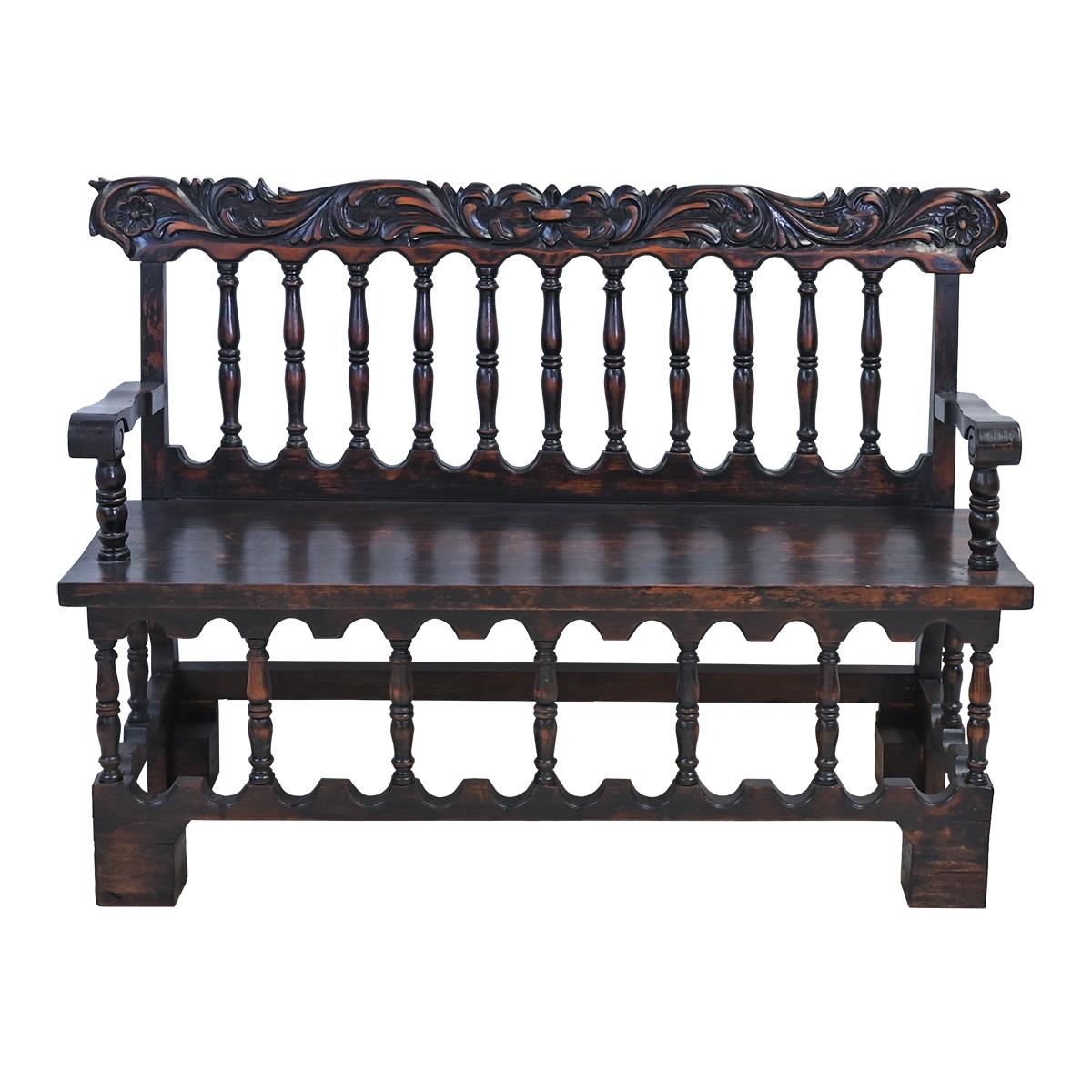 TUDORS BROWN GLOSS FINISH CARVED BENCH