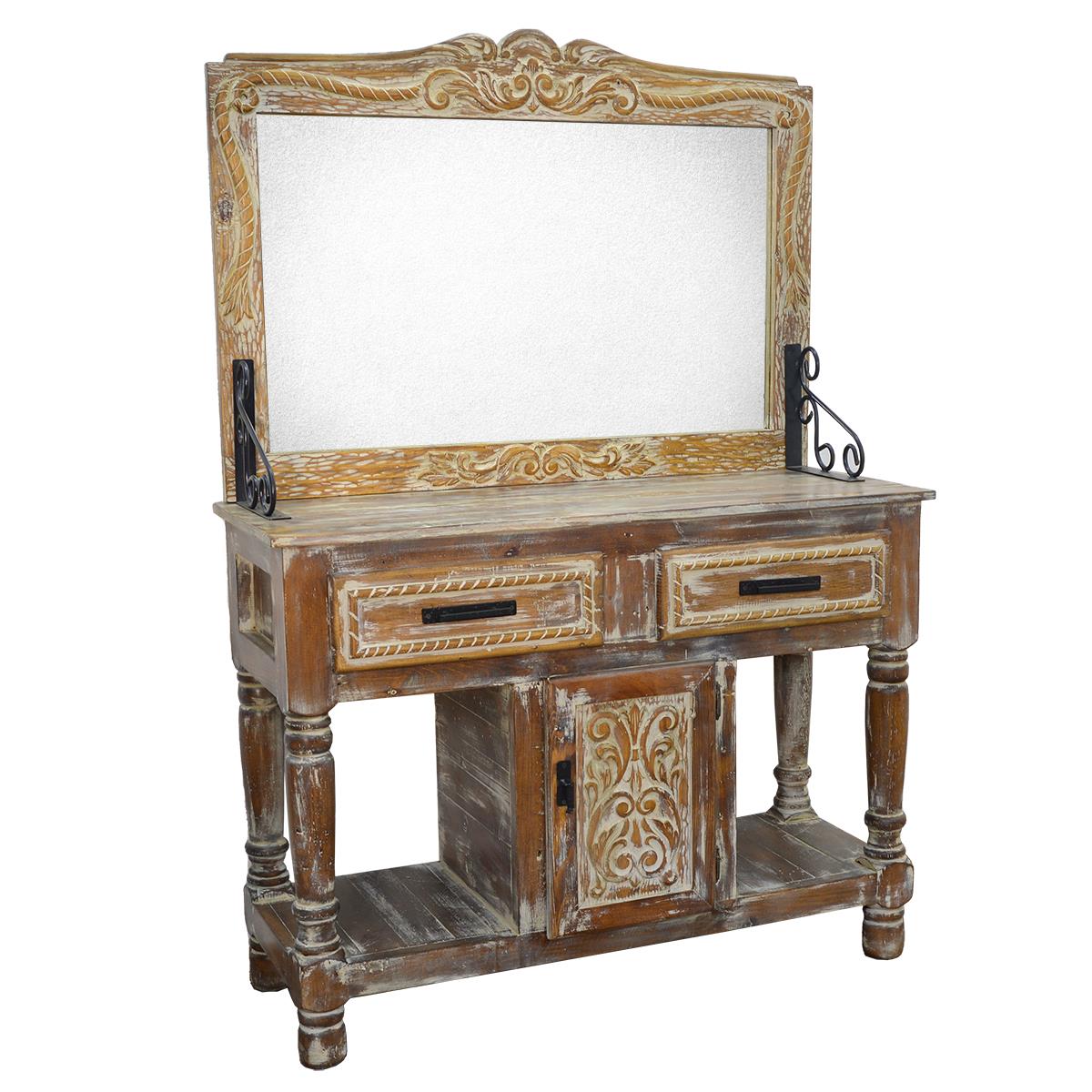 WHITE WASH HUTCH WITH ORIGINA L CARVING