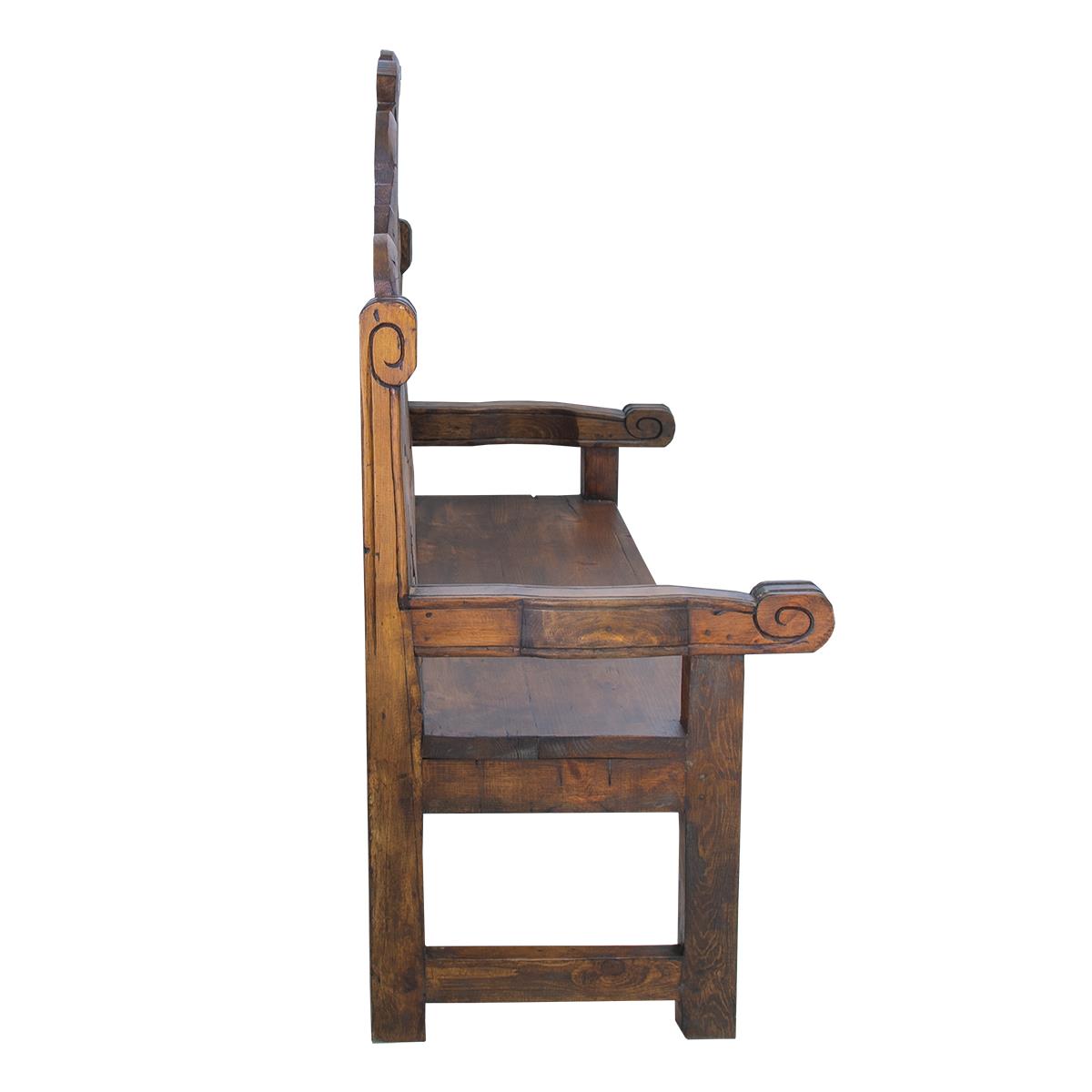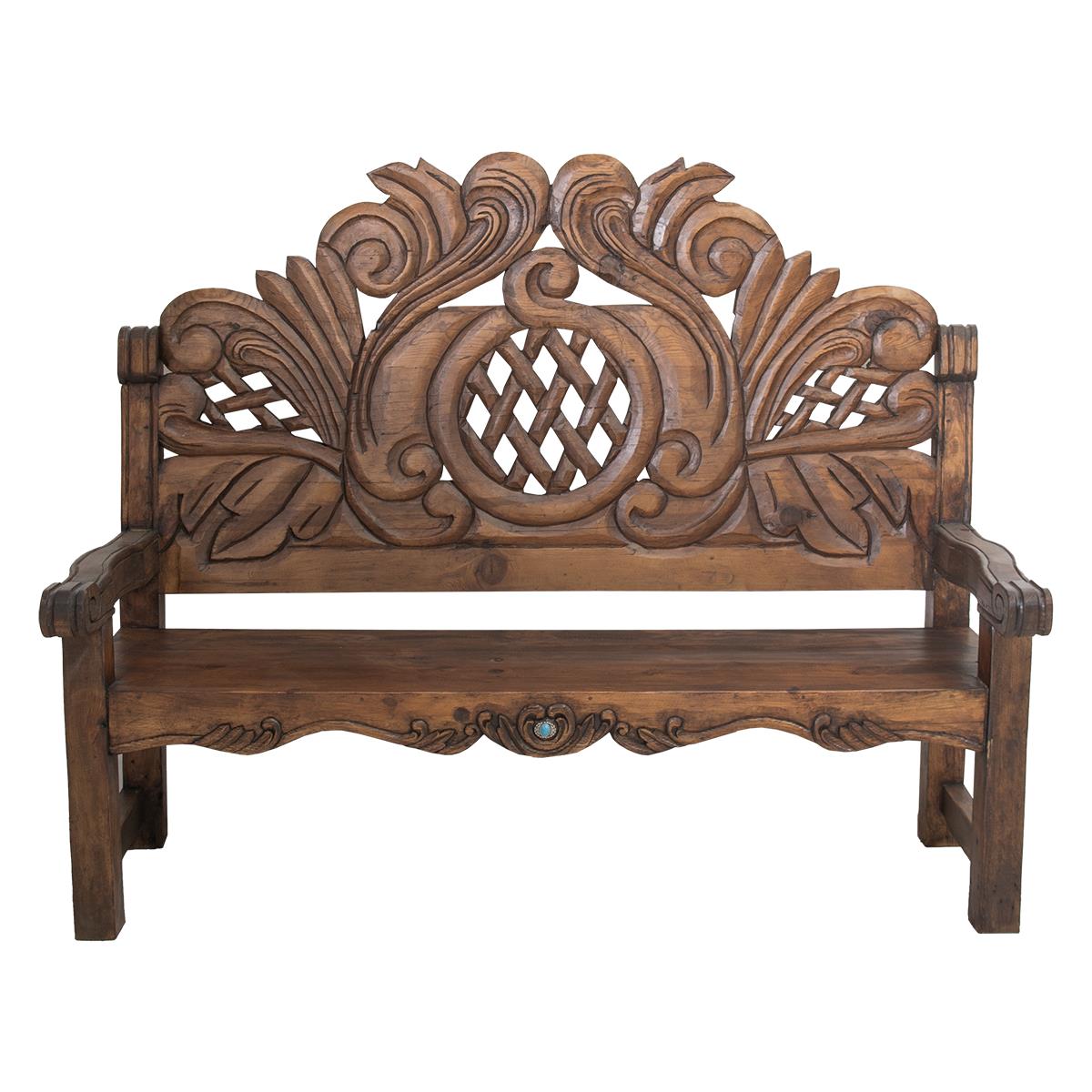 TUDORS BROWN GLOSS FINISH CARVED BENCH