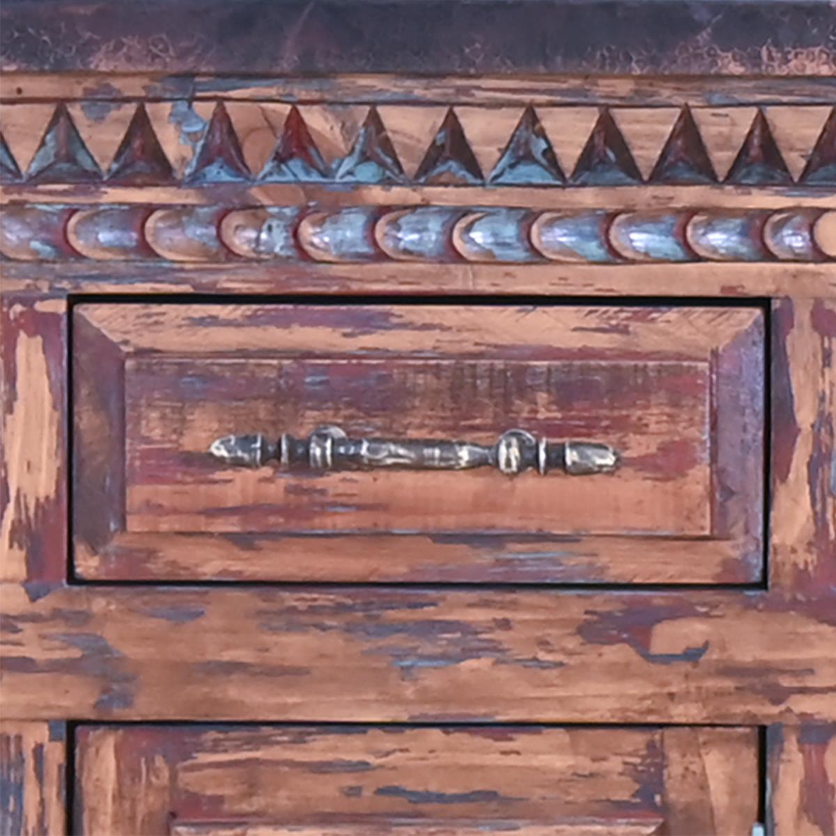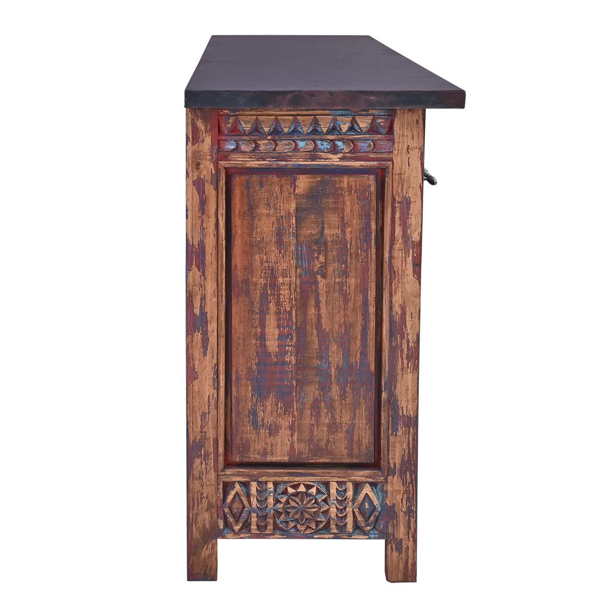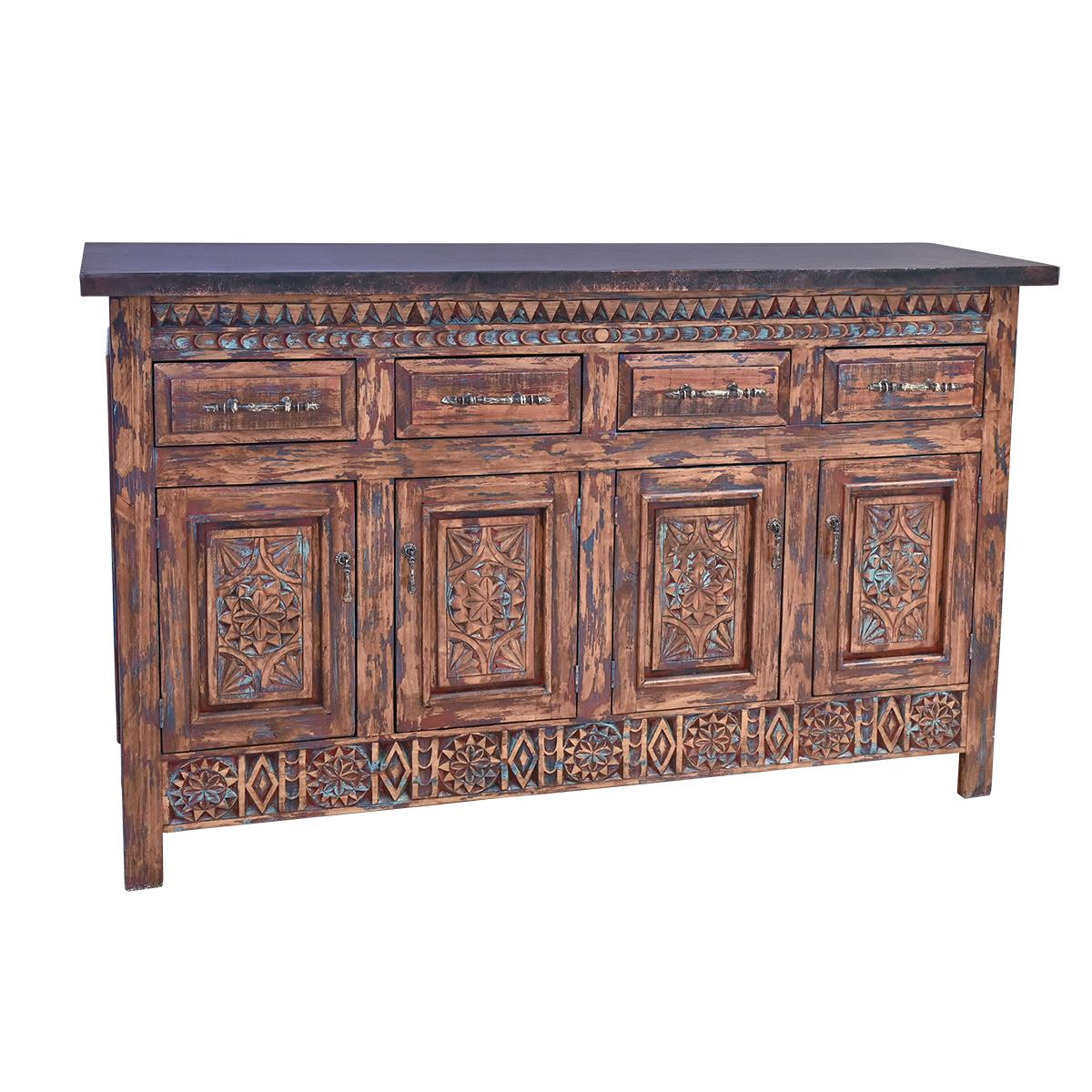 BOHO CARVED BUFFET WITH COPPER TOP AND BRONCE HARDWARE