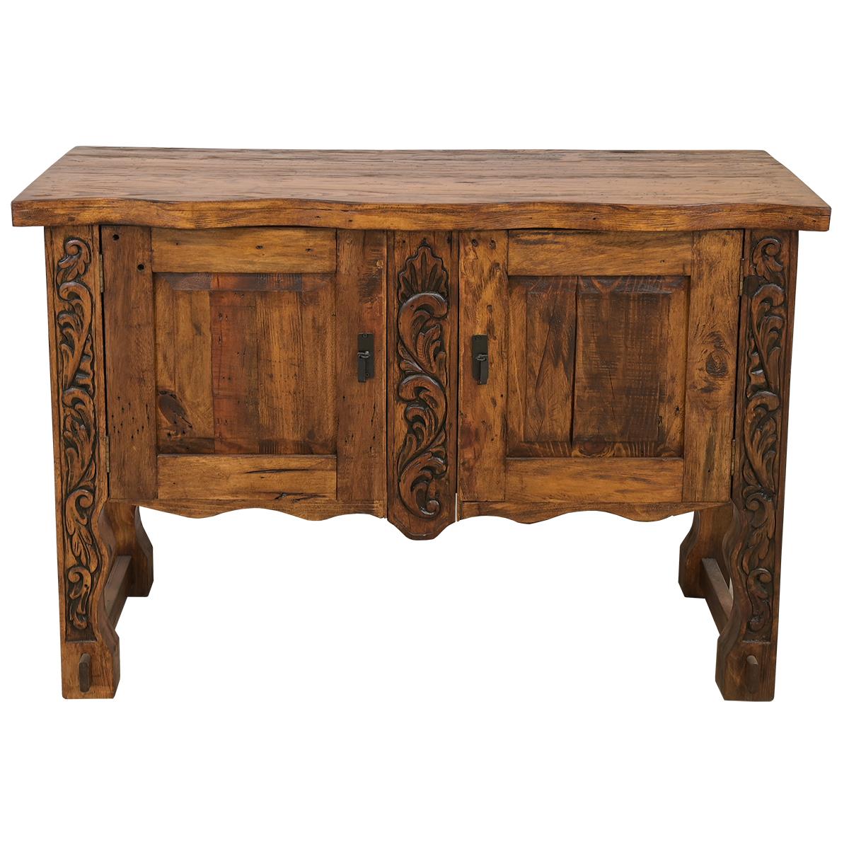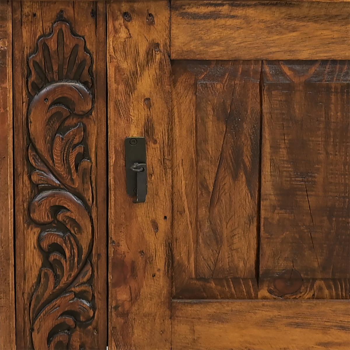 "Red River" - Two-door solid wood utility cabinet, hand-carved and finished with quality hand-forged fittings