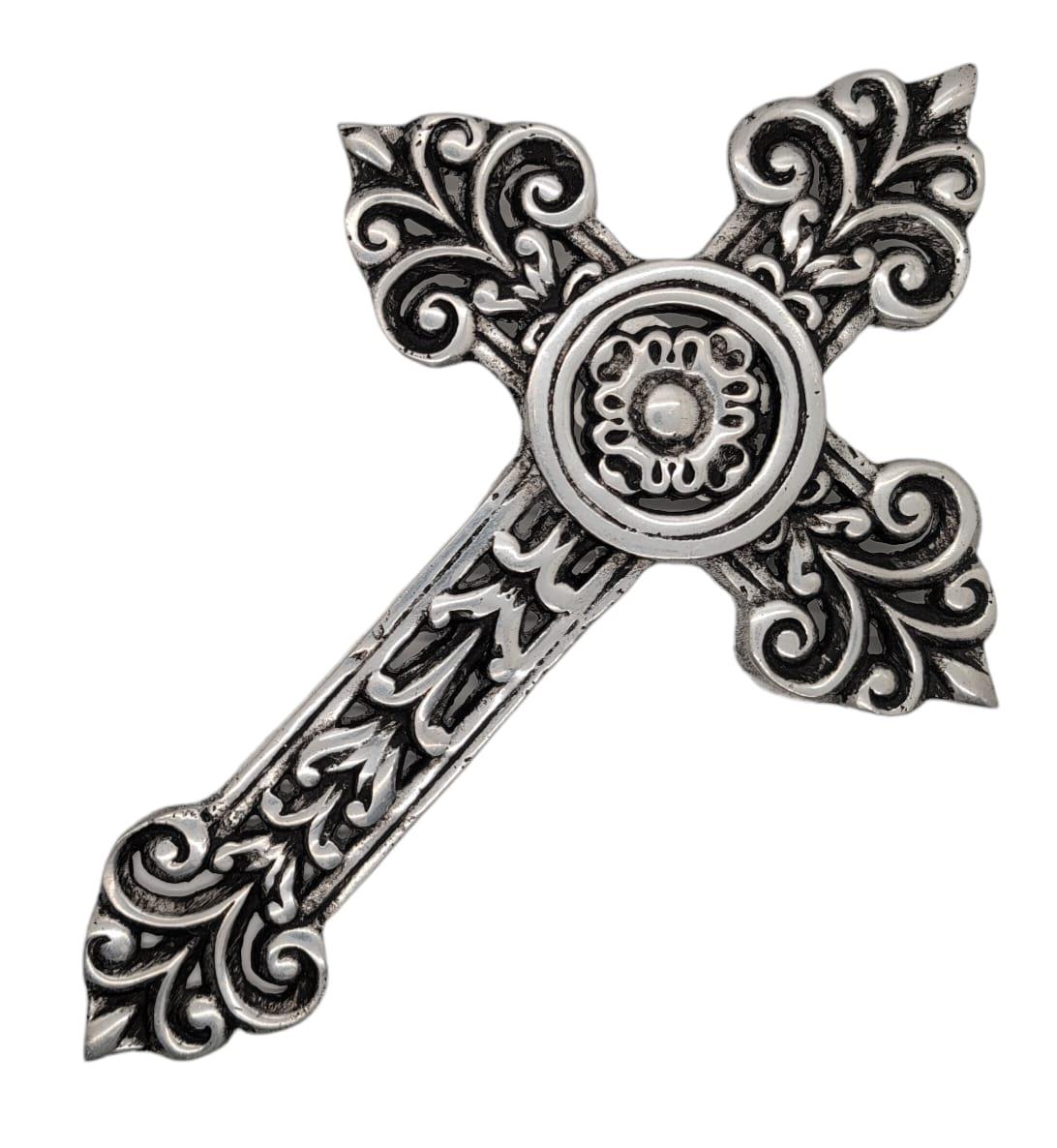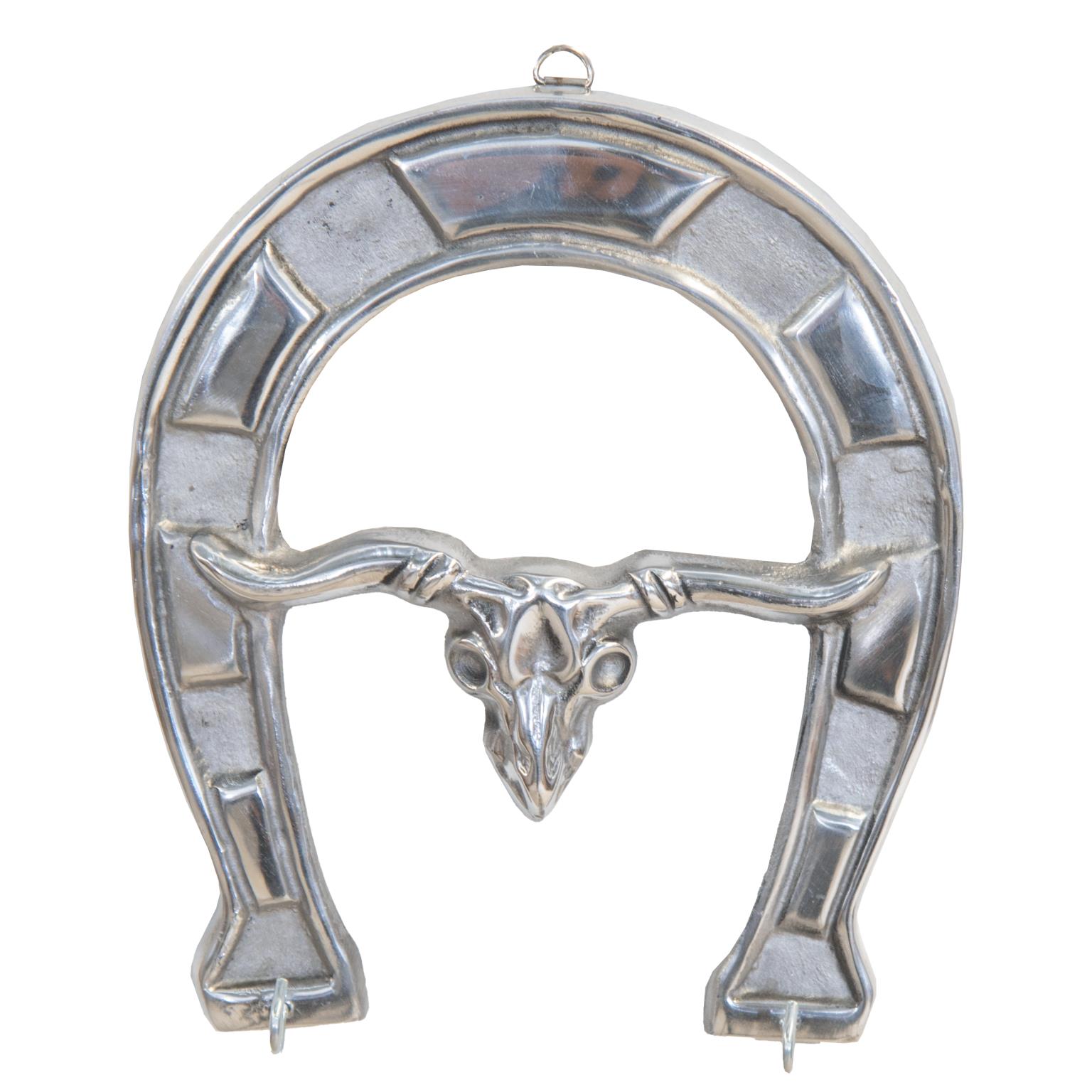 PEWTER COW SKULL WALL MOUNTED - WITH JAW 30" x 6" x 19"
