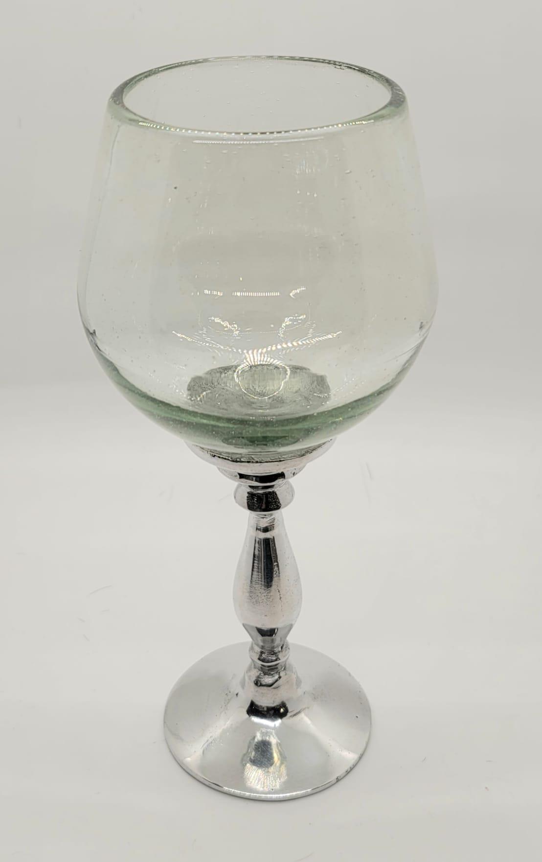 RECLAIMED WINE GLASS WITH PEWTER STEM - CLEAR 2.5" x 5.5"