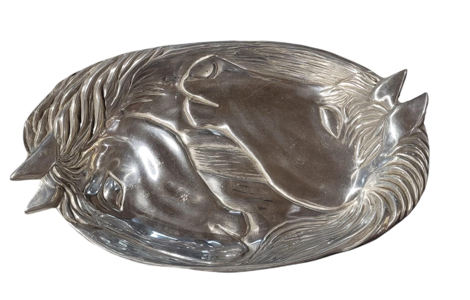 Pewter Horse on Wood Plinth 13.5"w X 5"d X 16"h