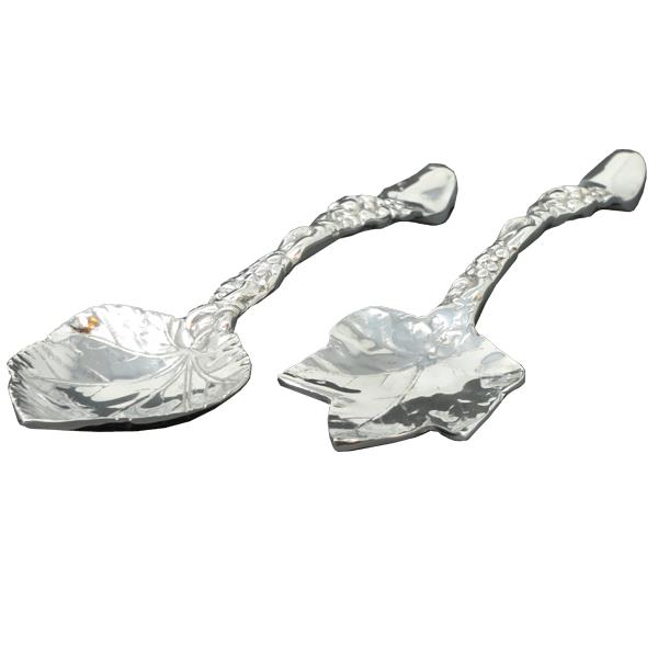 SET OF 2 LEAF PATTERN SERVING SPOONS 11"