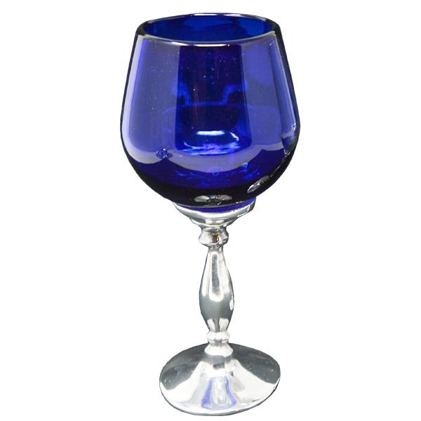RECLAIMED WINE GLASS WITH PEWTER STEM - COBALT 2.5" x 5.5"