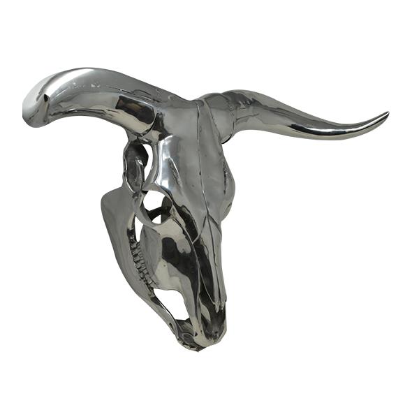 UNIQUE COW SKULL IN SOLID POLISHED PEWTER - NO JAW 30"W x 16"D x 22"H