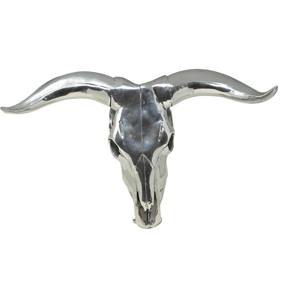 UNIQUE COW SKULL IN SOLID POLISHED PEWTER (HORN TO HORN 30") (FACE: 19"L 17"D)
