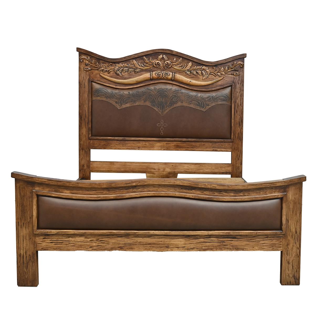 Drover Bed - Queen Tooled Leather & Hand Carved