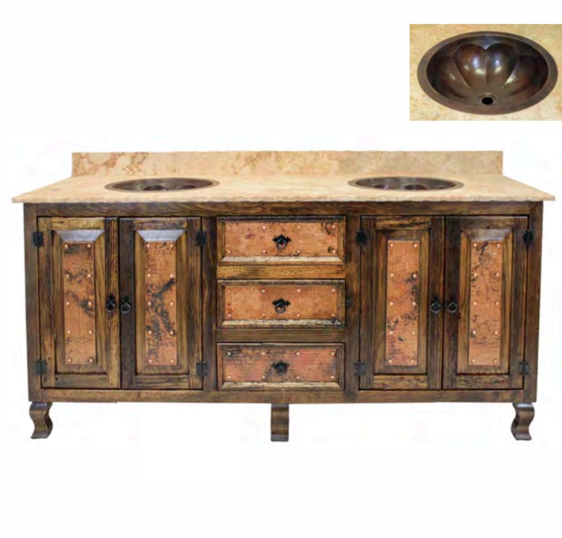COPPER TOP VANITY FEATURING COPPER VESSEL SINK