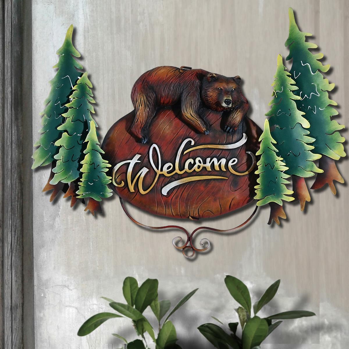 PINE TREES & BEAR WELCOME DOOR PLAQUE
