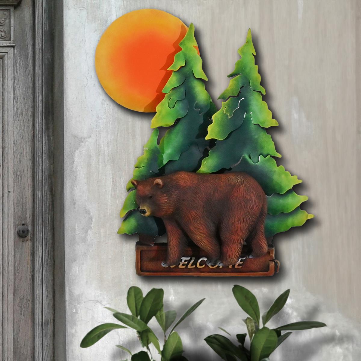 PINE TREES, SUN & BEAR WELCOME DOOR PLAQUE
