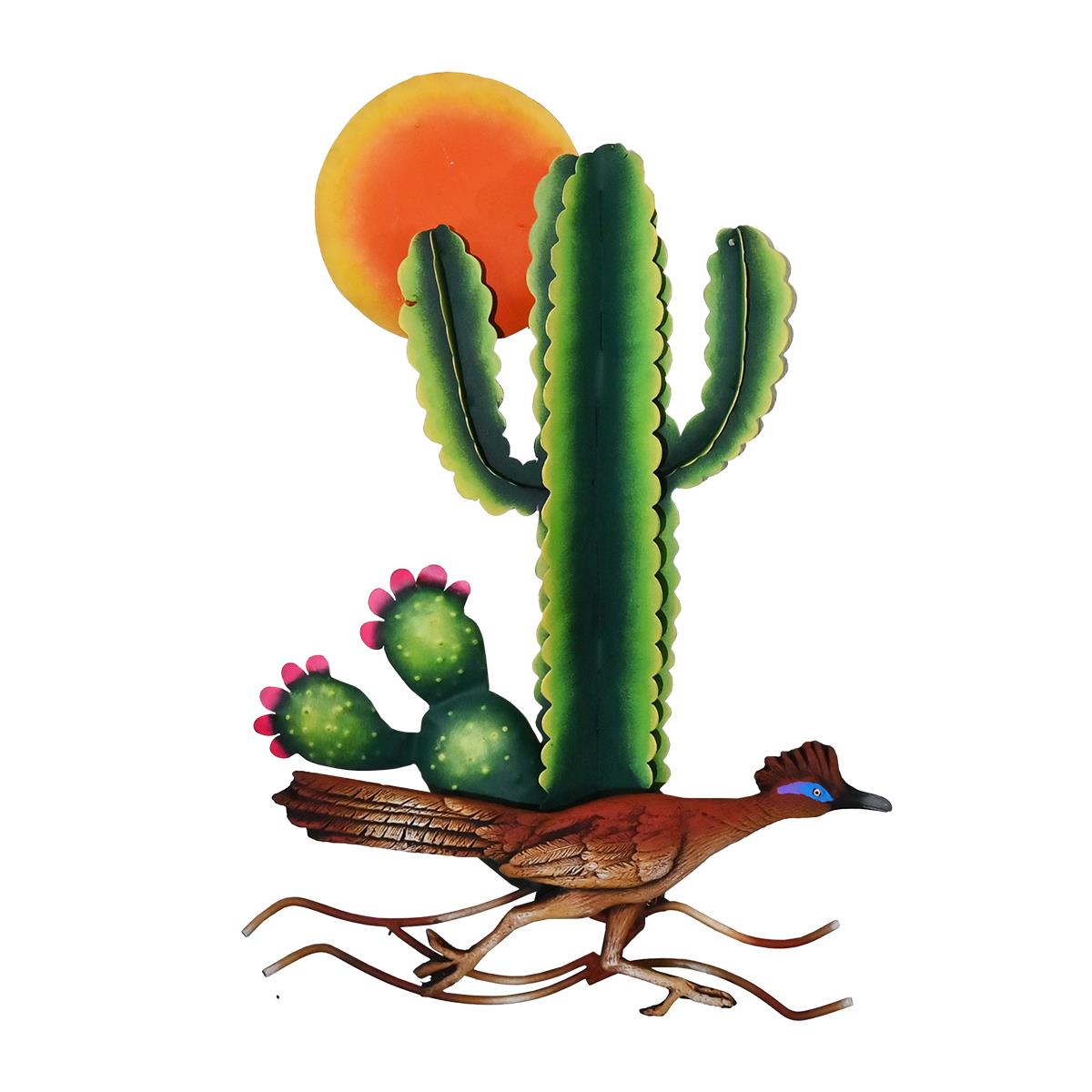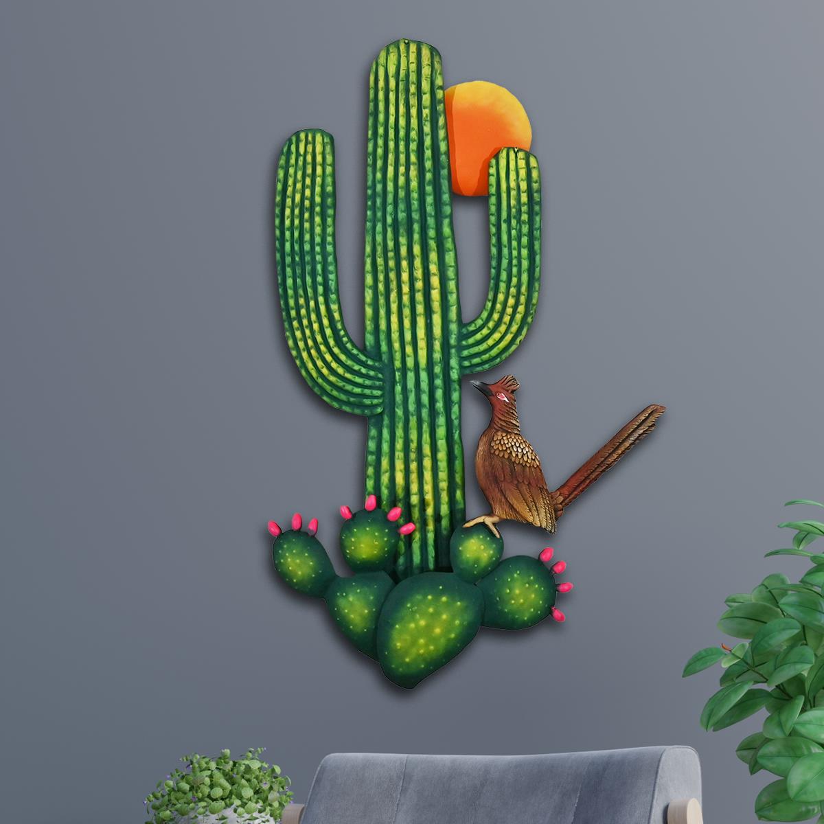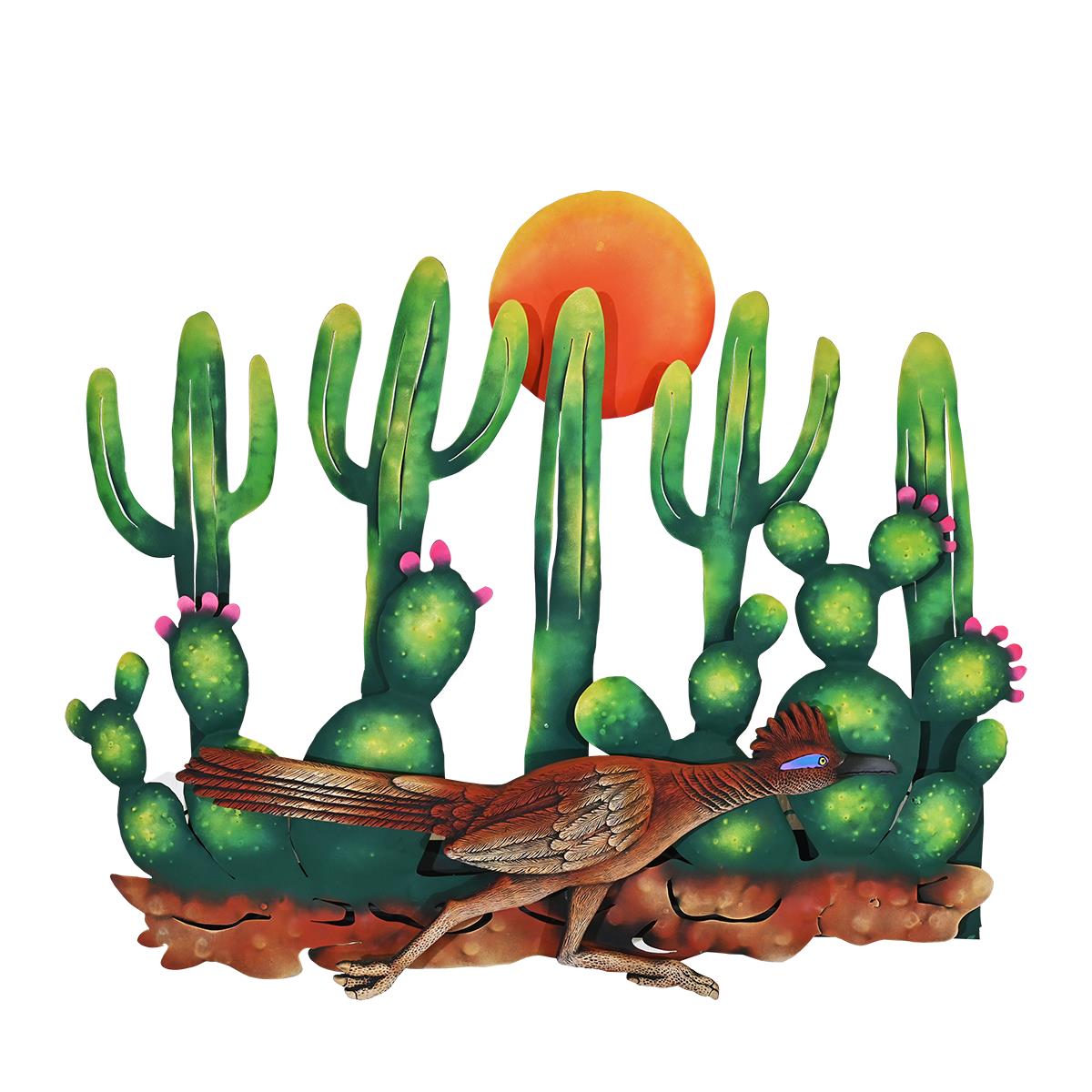 MULTIPLE CACTUS, SUN & ROADRUNNER WALL HANGING