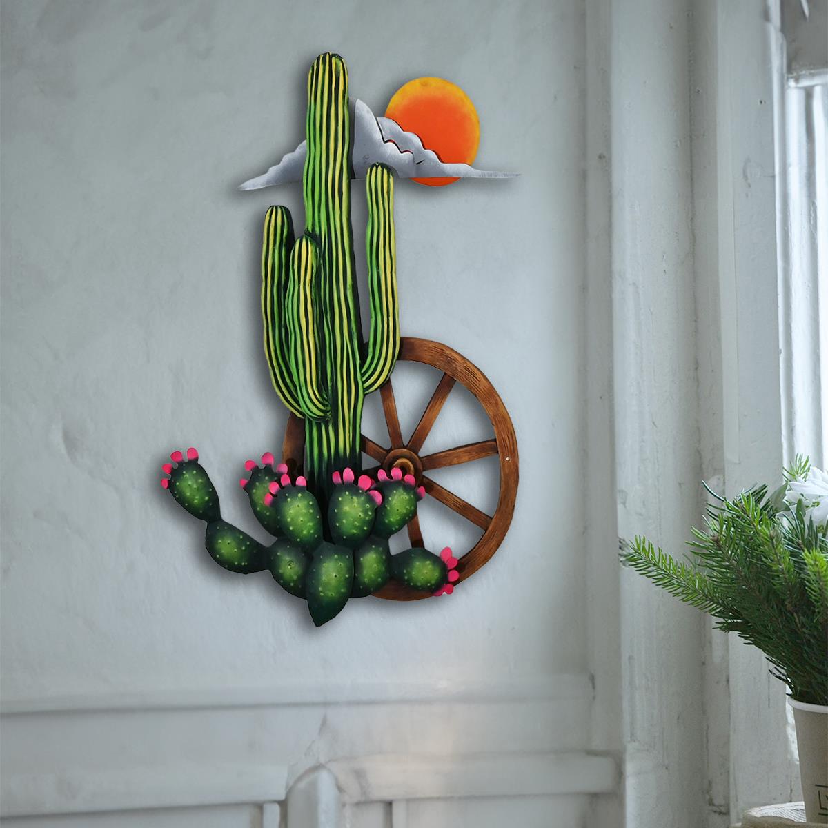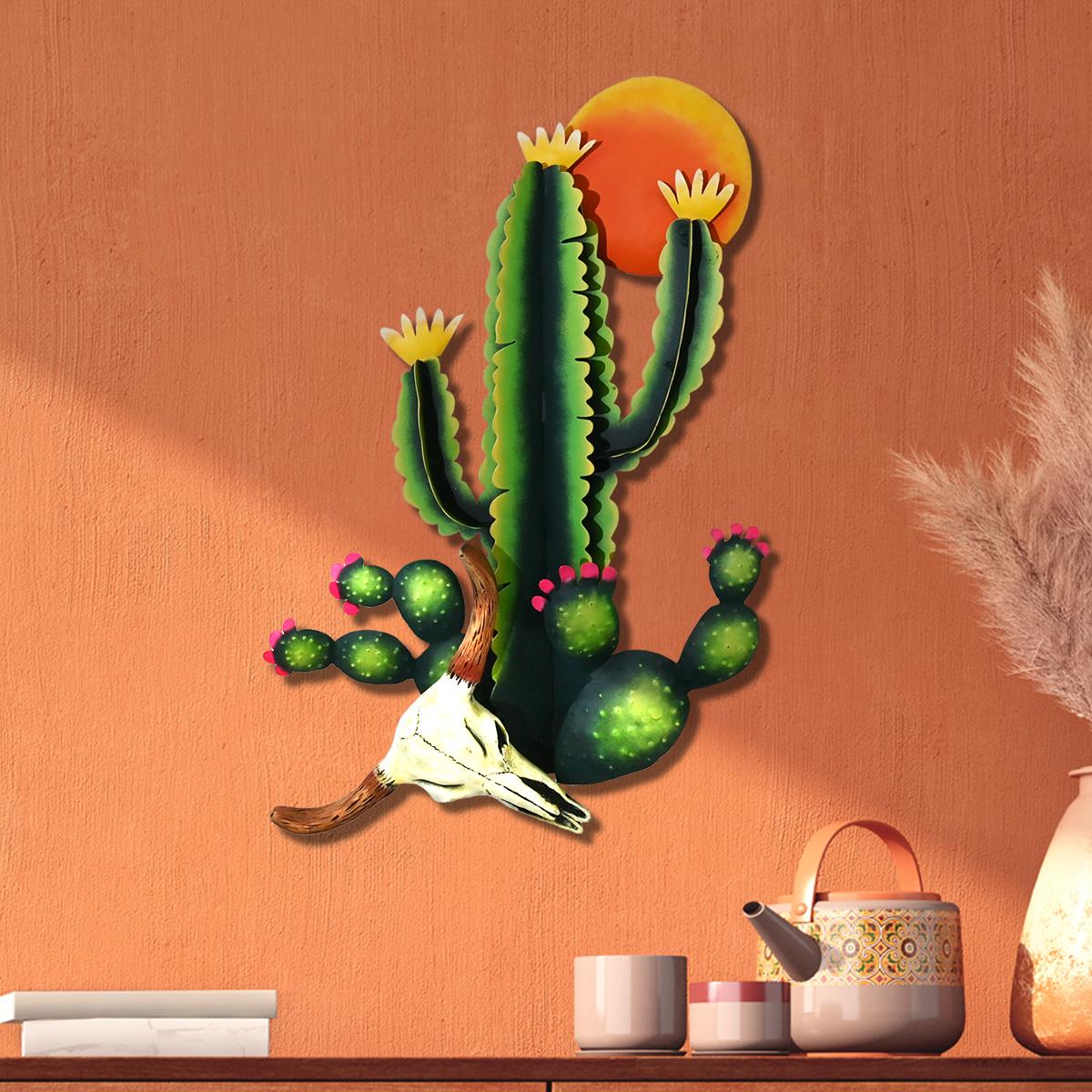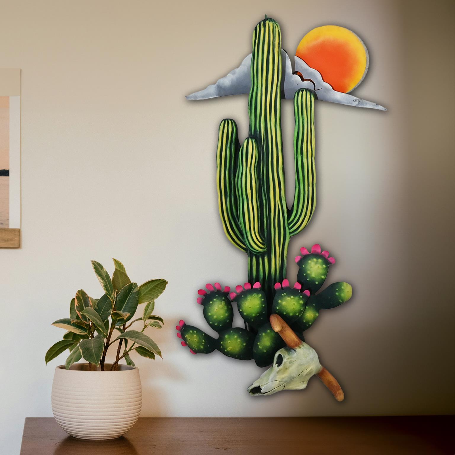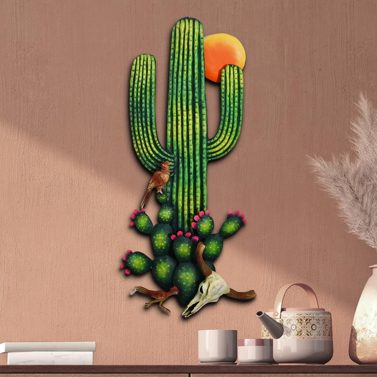 MULTIPLE CACTUS, SUN & ROADRUNNER WALL HANGING