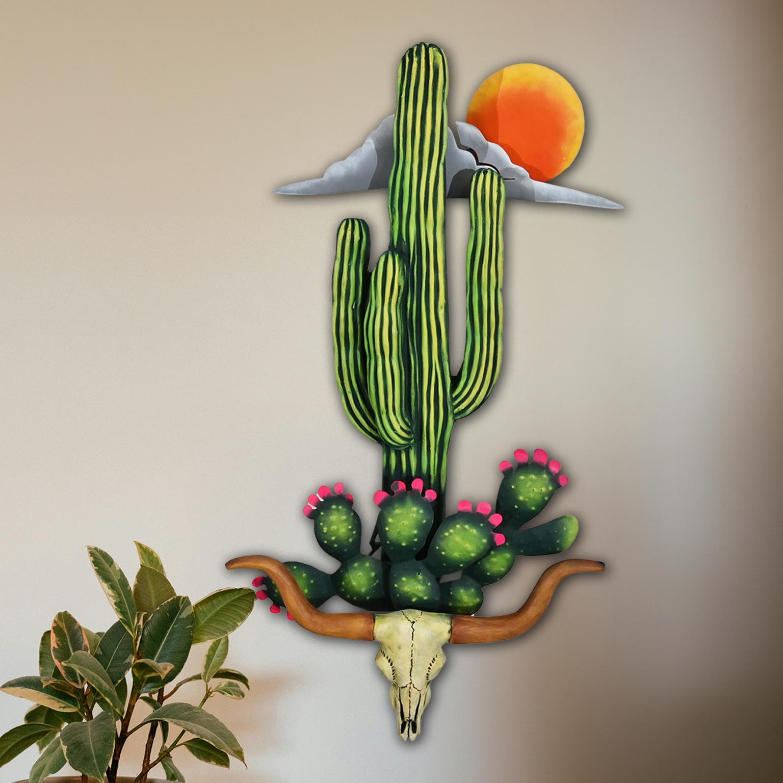 CACTUS, SUN, CLOUD & LONGHORN SKULL WALL (CENTER) HANGING
