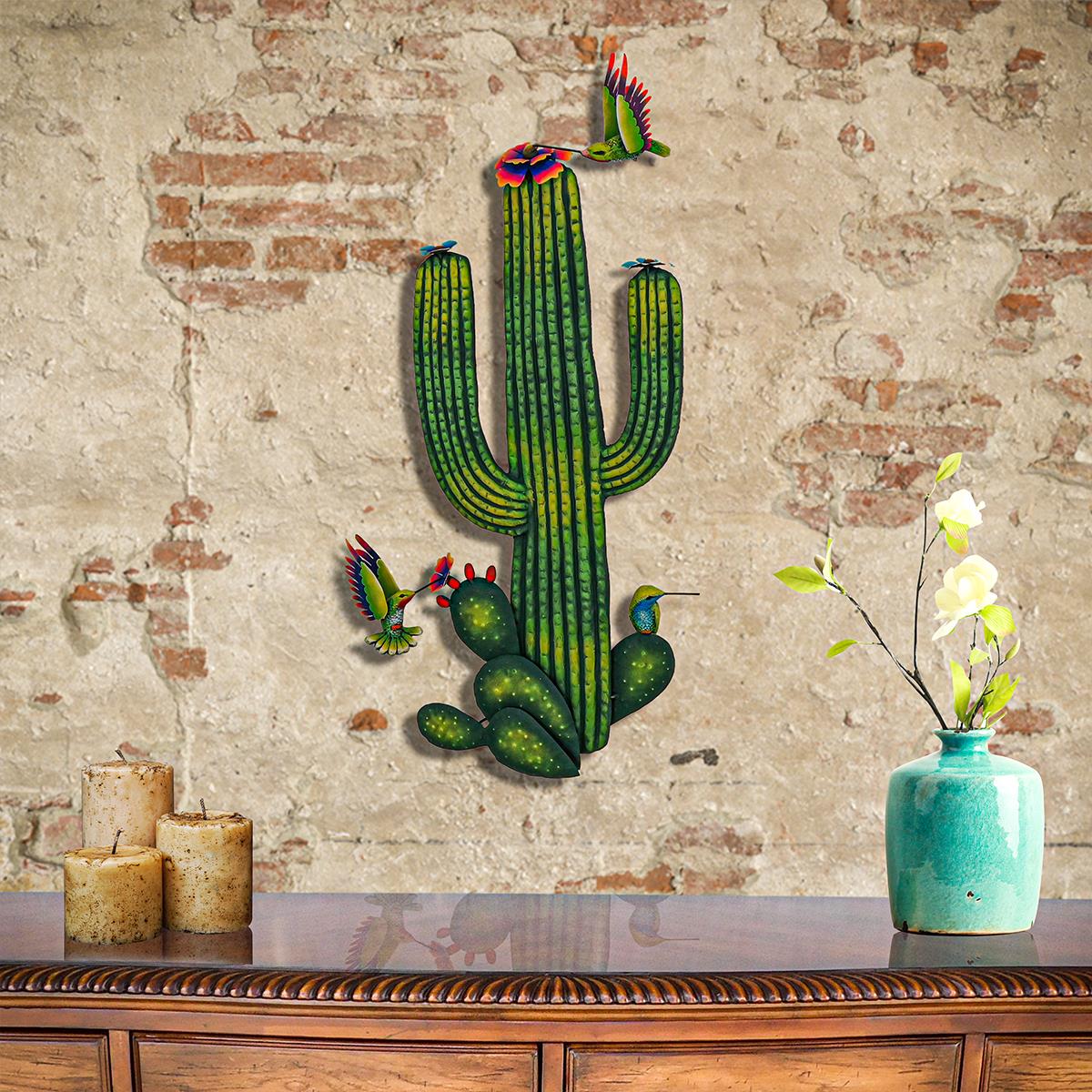 CACTUS WITH HUMMINGBIRDS WALL HANGING